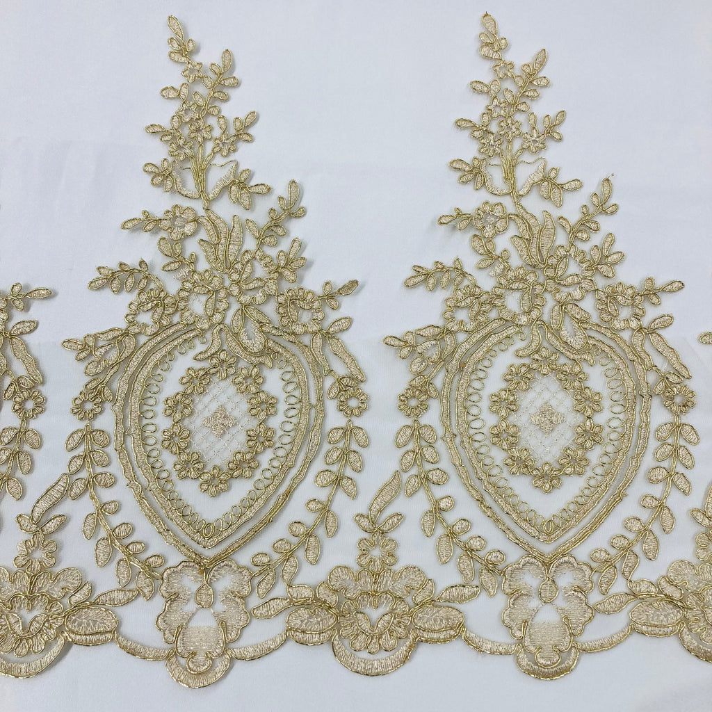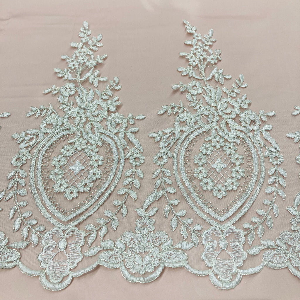 Corded Lace Trimming Embroidered on 100% Polyester Net Mesh | Lace USA - 73016W
