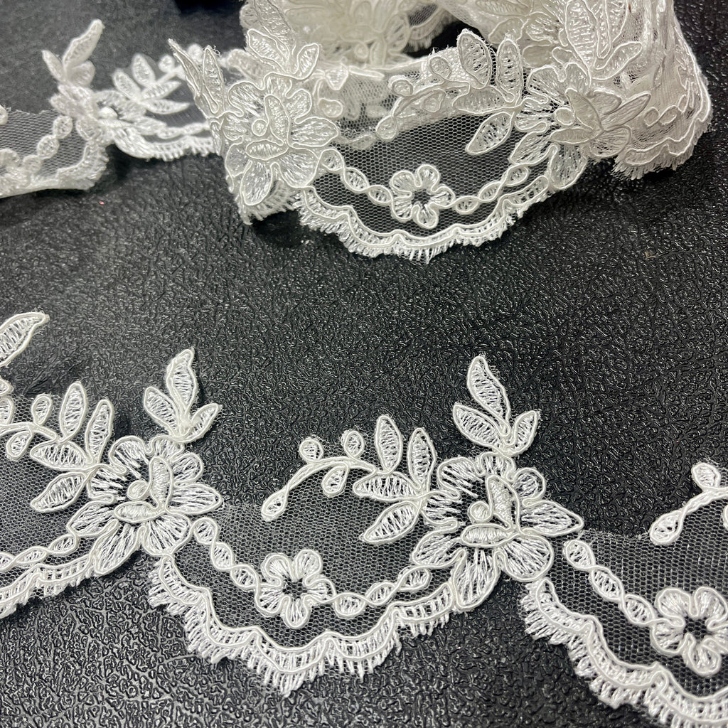 Corded Lace Trimming Embroidered on 100% Polyester Net Mesh | Lace USA - 96665W/1
