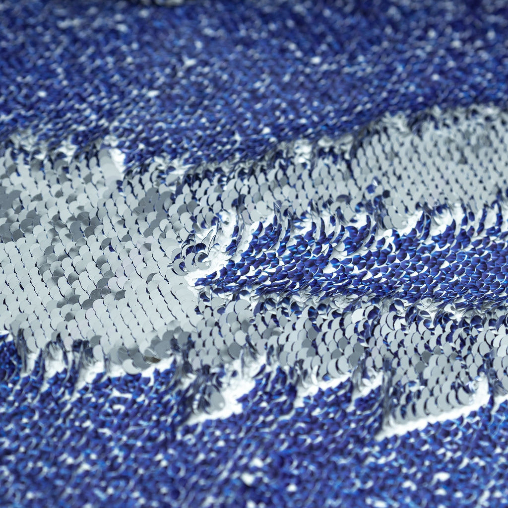 Denim Printed Flip Sequin on Spandex is a 2-way stretch Polyester Spandex base with embroidered with flip sequin that features a blue denim print on the top and a solid white on the reverse. This fabric is ideal for resort wear, formal designs and couture fashion. One (1) yard of this fabric measures 36" x 60". This versatile fabric is perfect for many types of pieces from costumes to activewear. Its two-way stretch, durability, and sequins make it stand out and ideal for any situation. This fabric is designed to provide superior comfort with its luxurious soft-touch and elasticity. The sequin detail is a fashionable addition to the fabric and adds a unique touch, making it perfect for a variety of occasions.