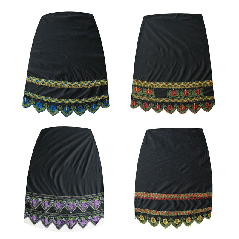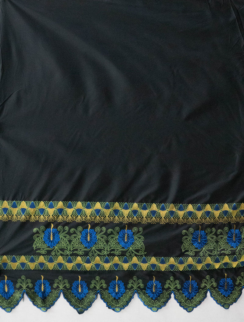 This Double Anthurium Embroidered Border Polyester Fabric features an intricate embroidered pattern with a border, making it perfect for creating skirts and other garments. Made from durable polyester fabric, this fabric offers both beauty and functionality, making it a versatile choice for any project.