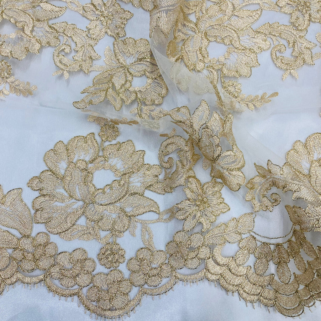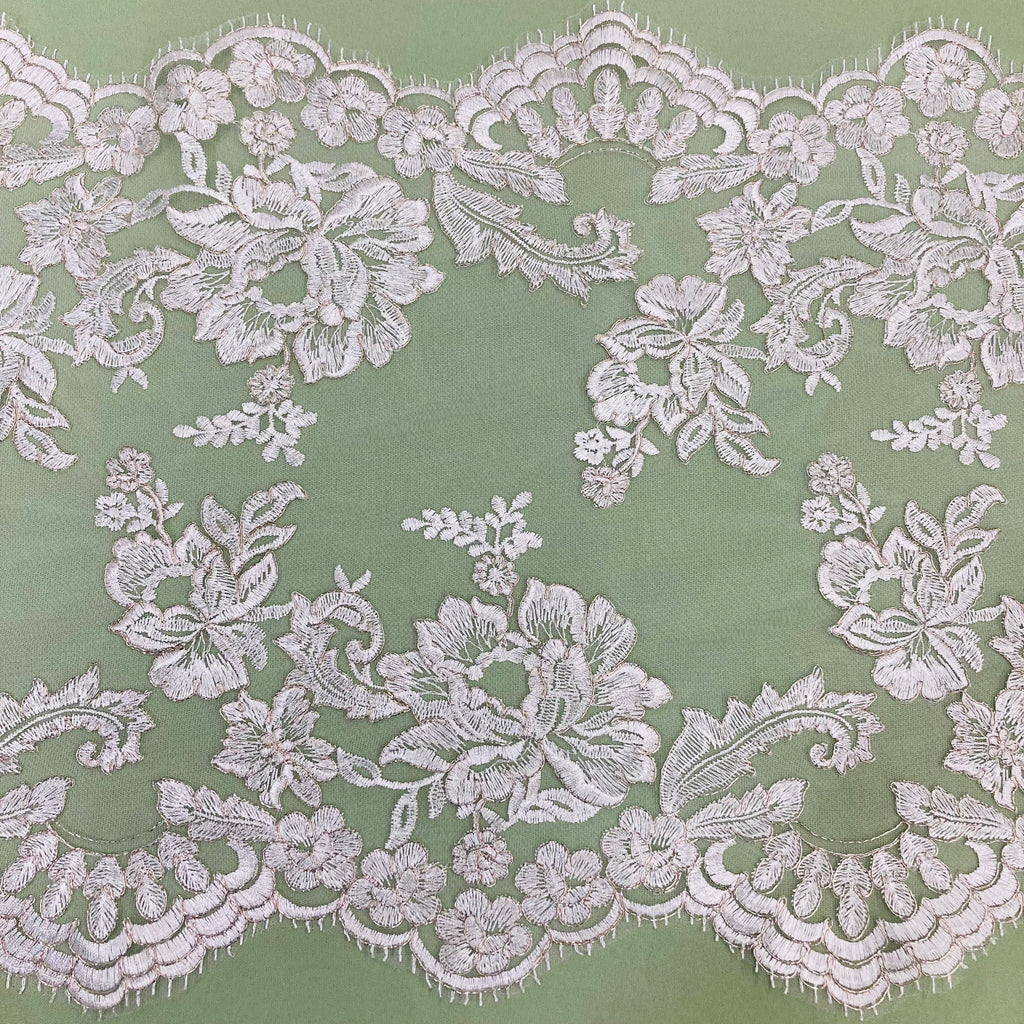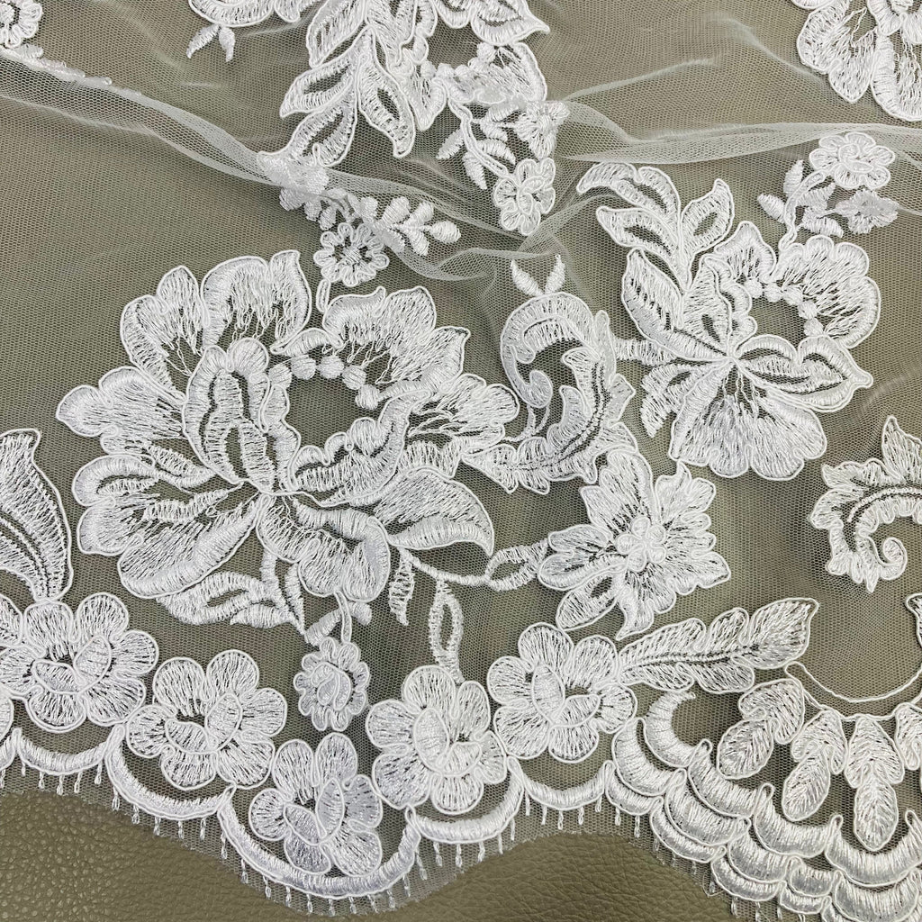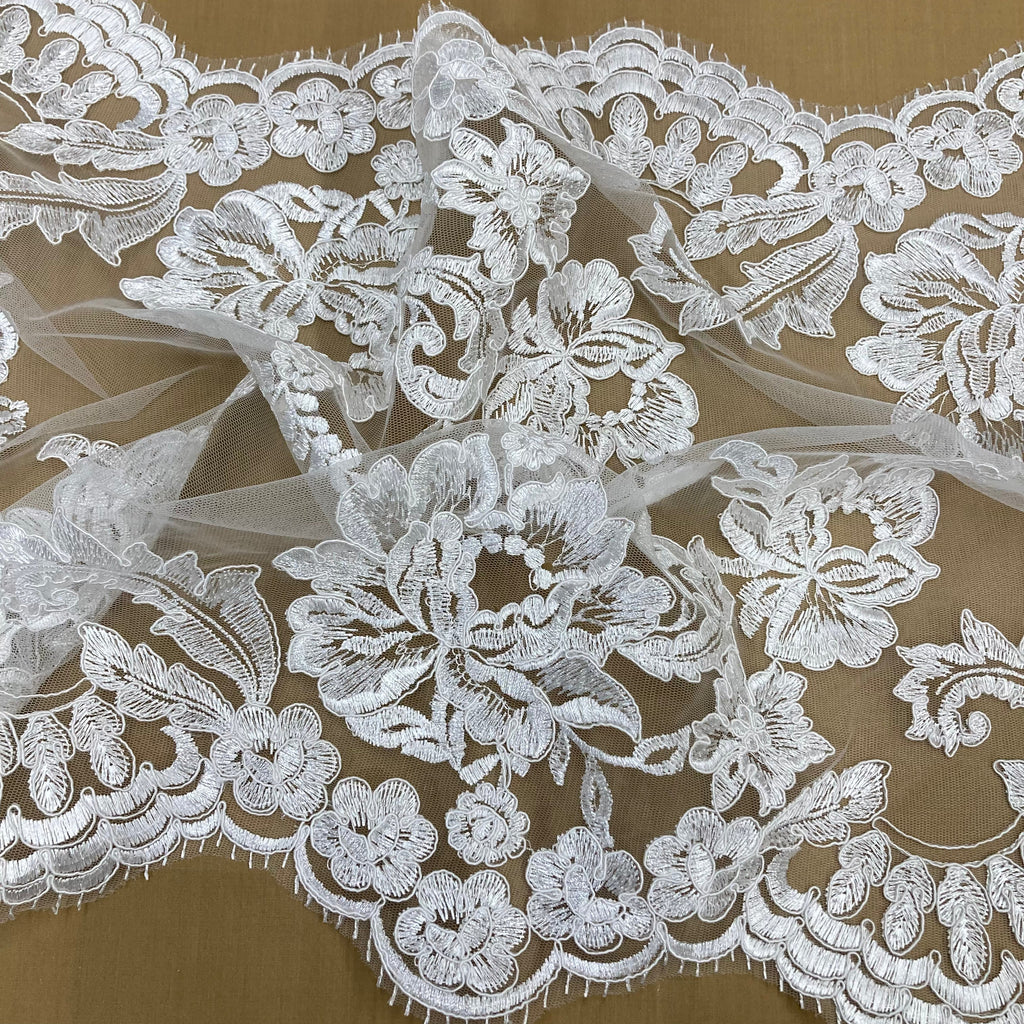 Double Sided Floral Lace Trimming Corded Embroidered on 100% Poly. Net Mesh | Lace USA - 97129W/2
