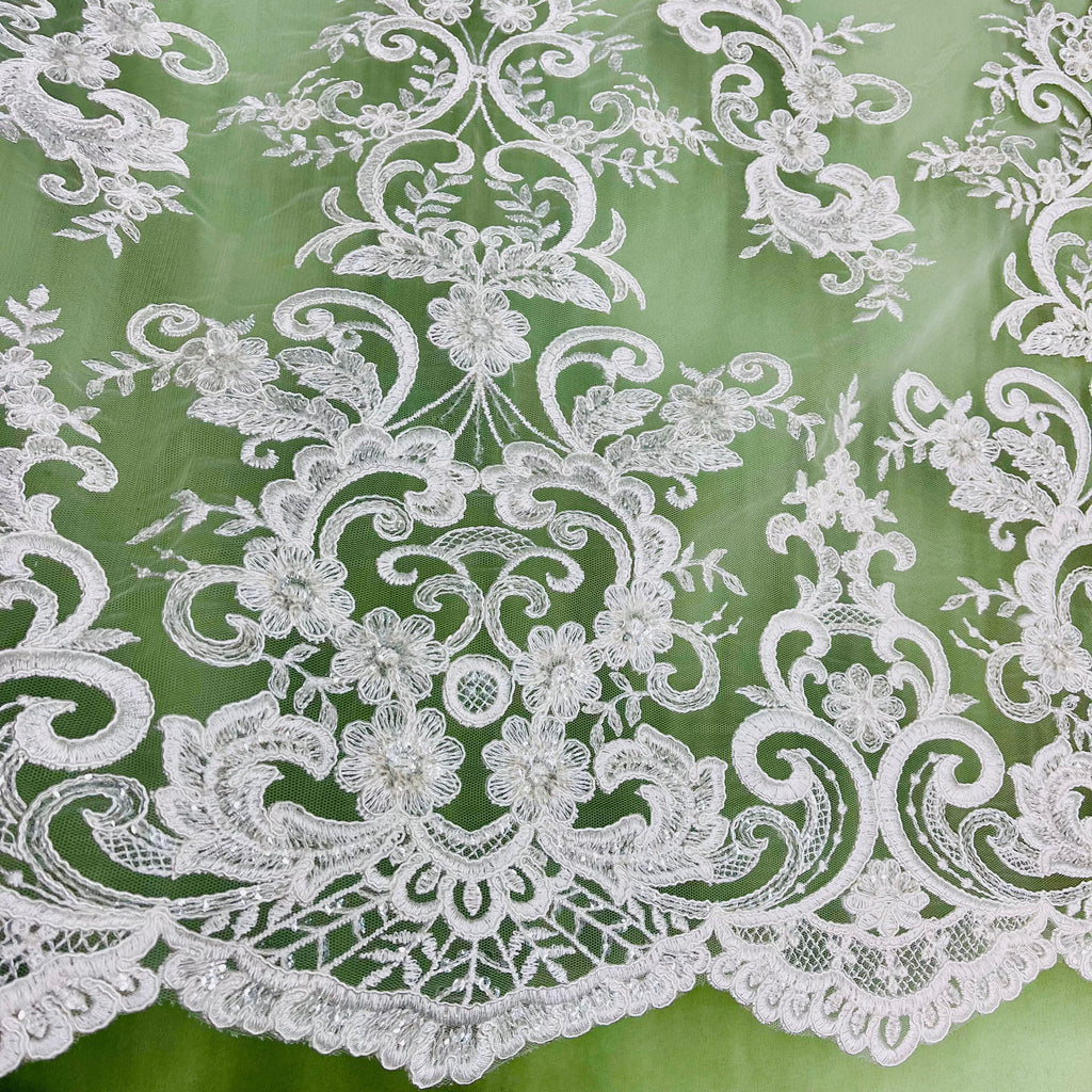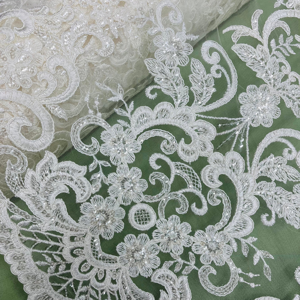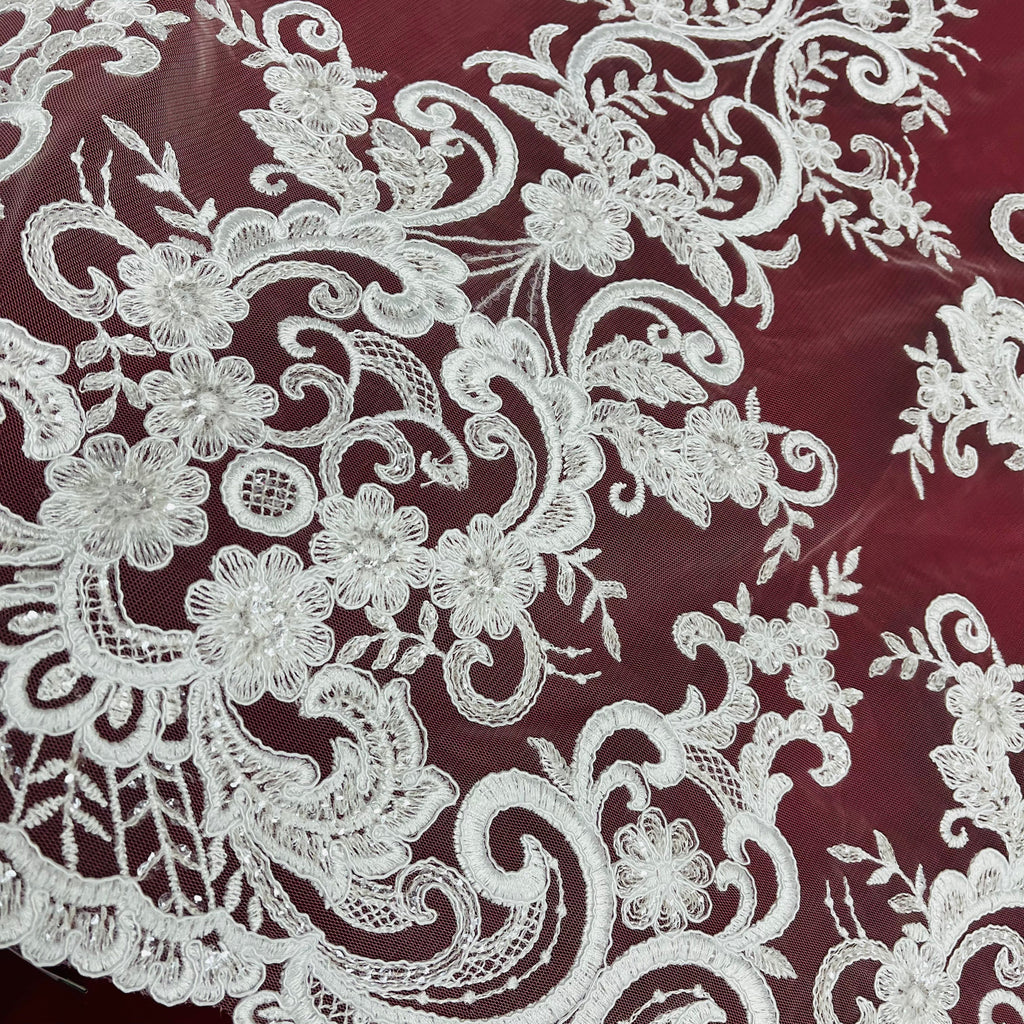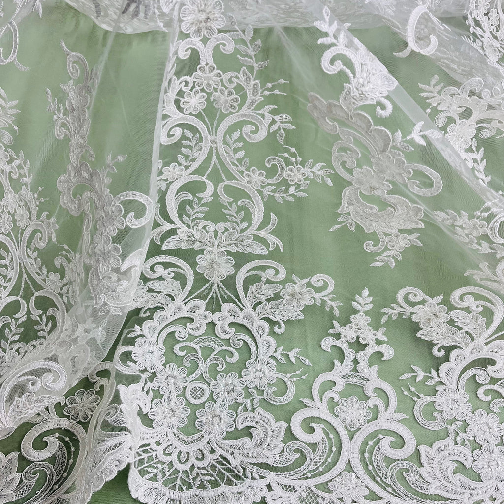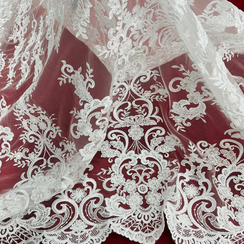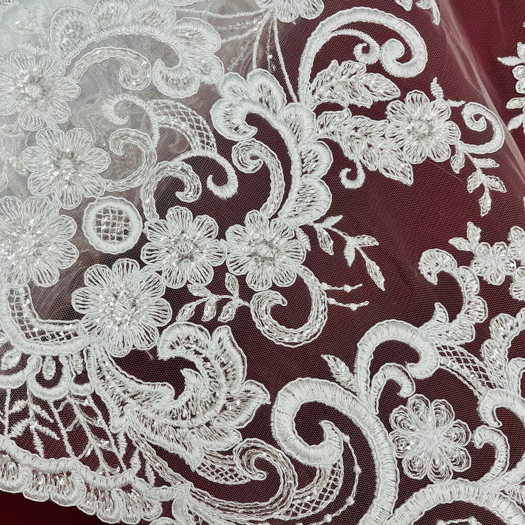 Ethereal Elegance: Beaded & Corded Bridal Embroidered Lace Fabric on Polyester Net Mesh| Lace USA - 97213W-SB