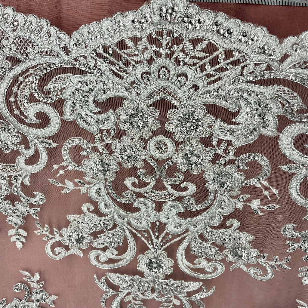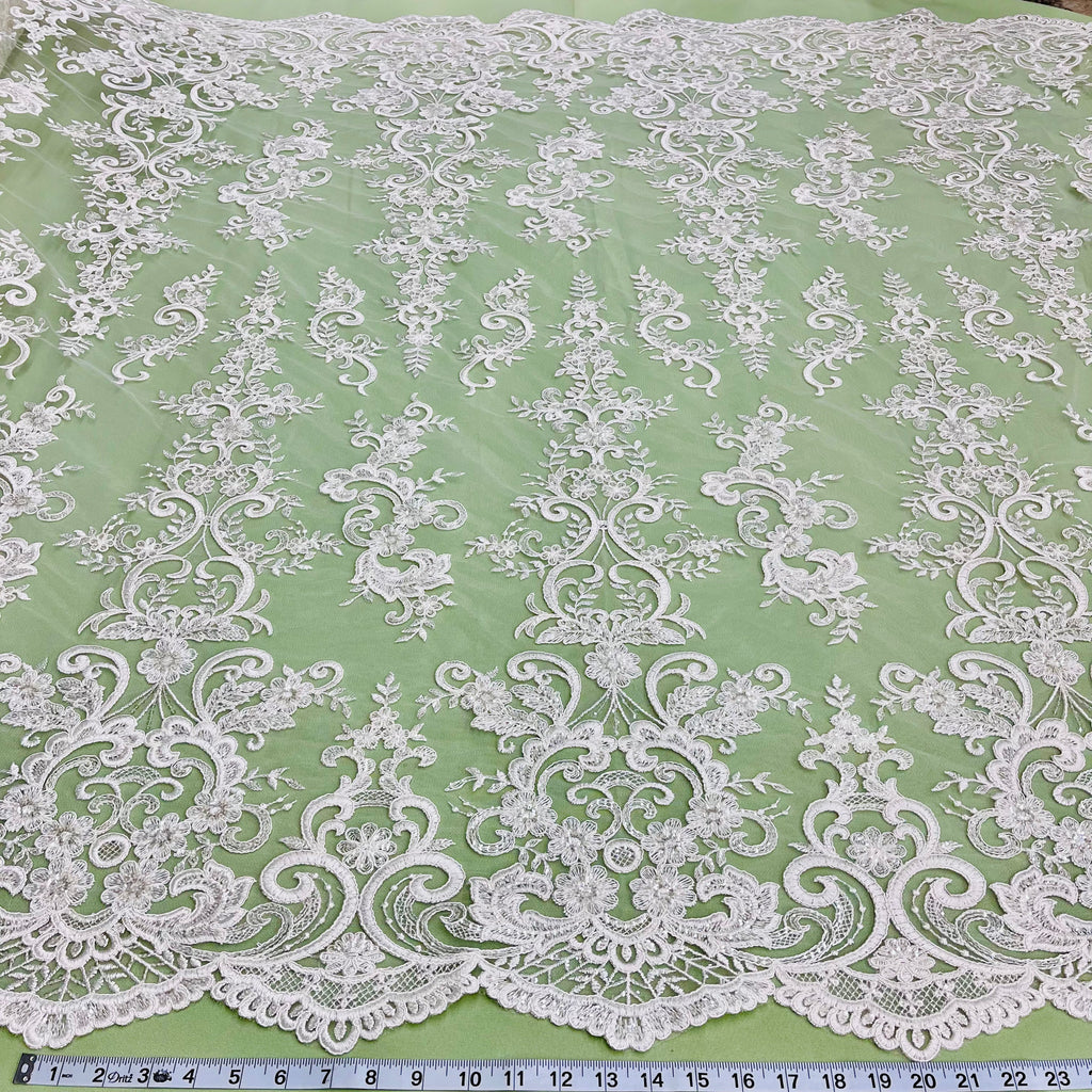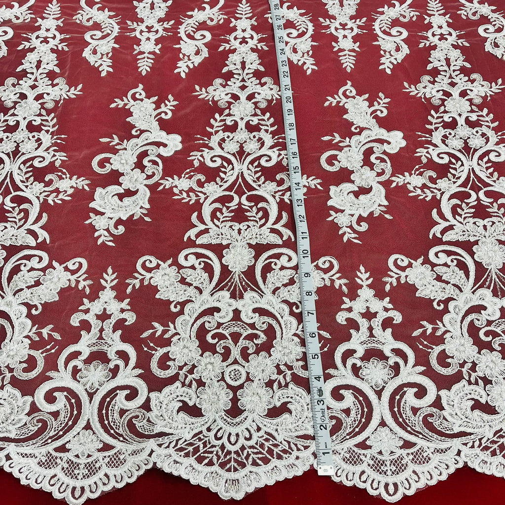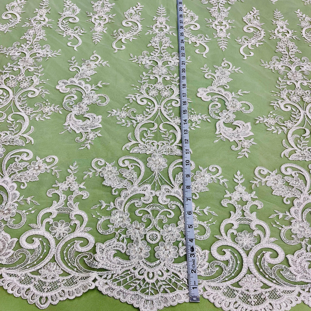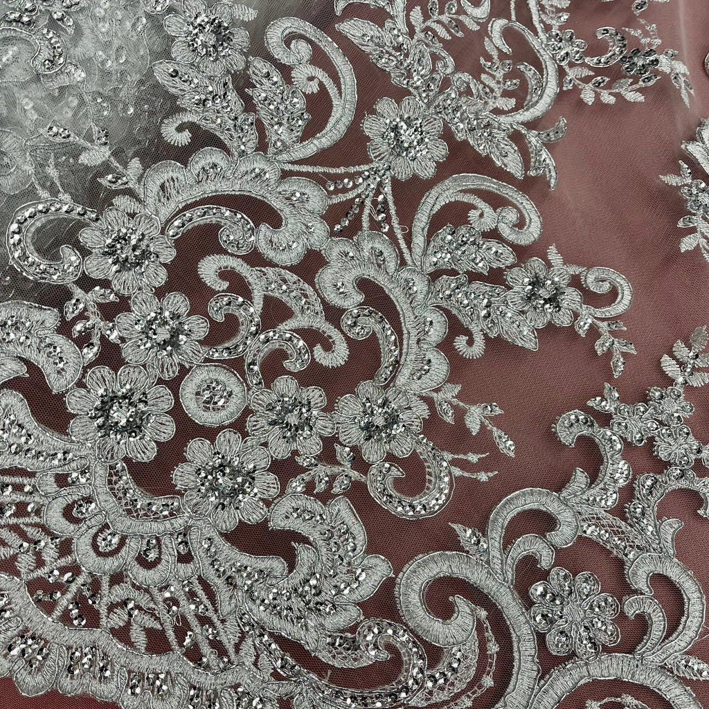 Ethereal Elegance: Beaded & Corded Bridal Embroidered Lace Fabric on Polyester Net Mesh| Lace USA - 97213W-SB