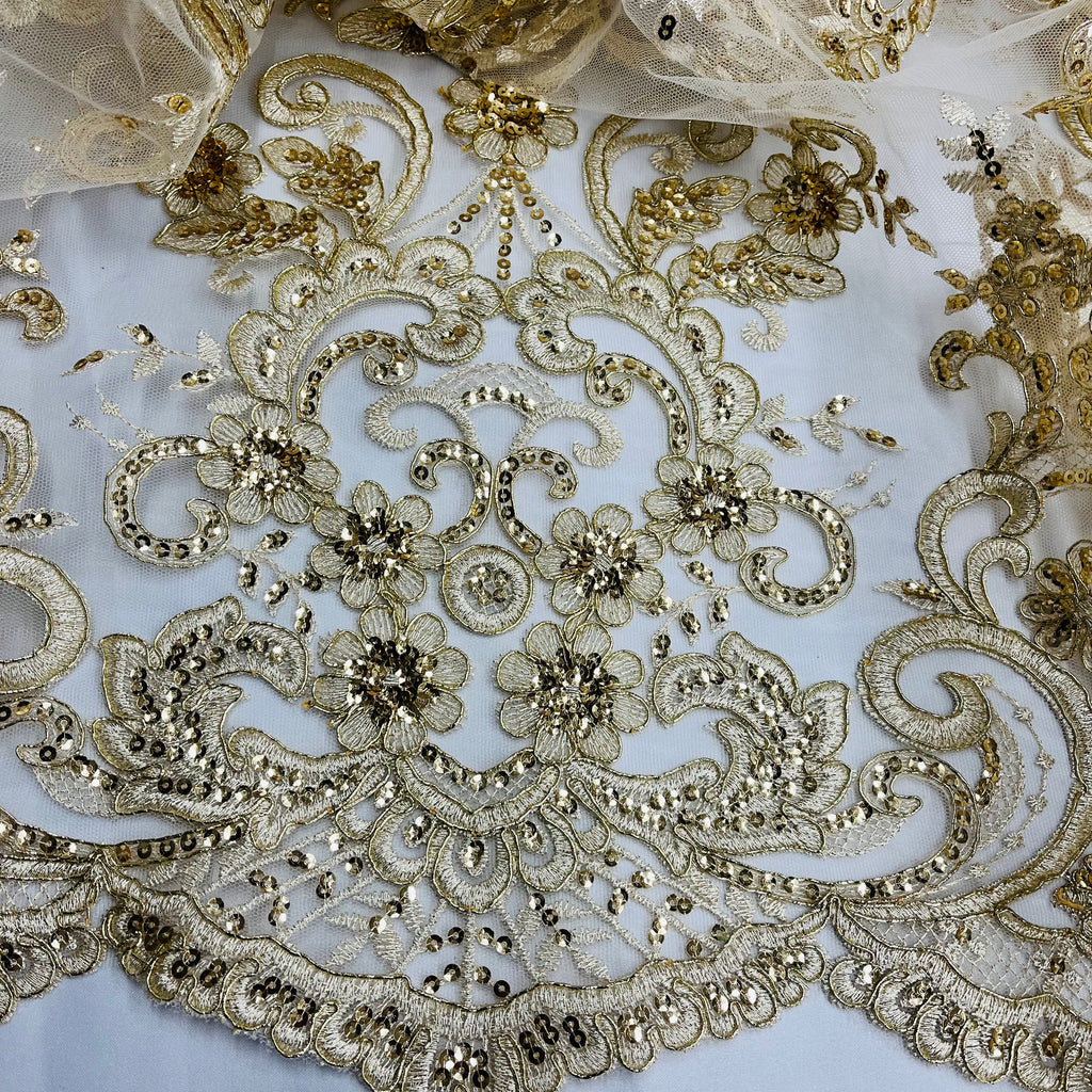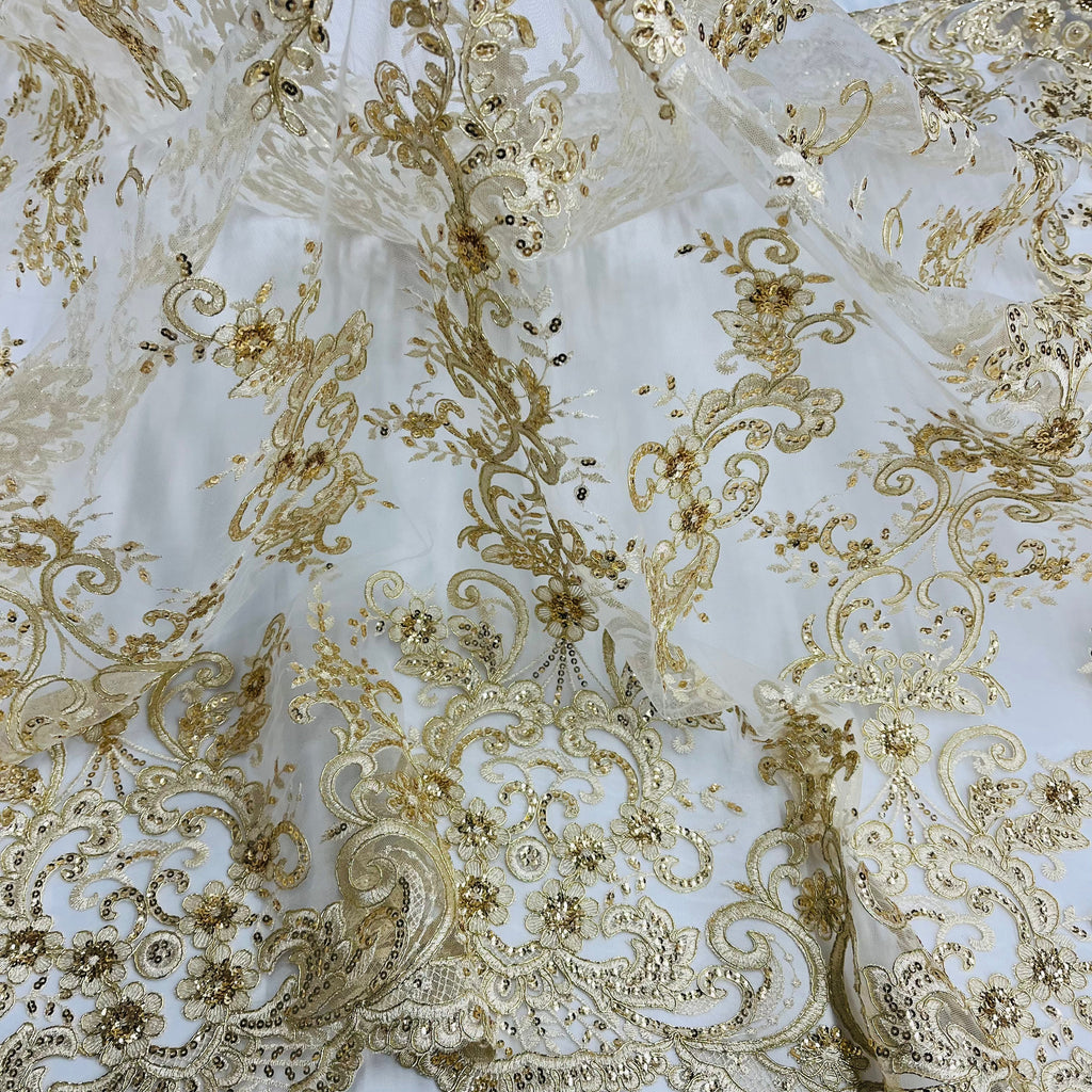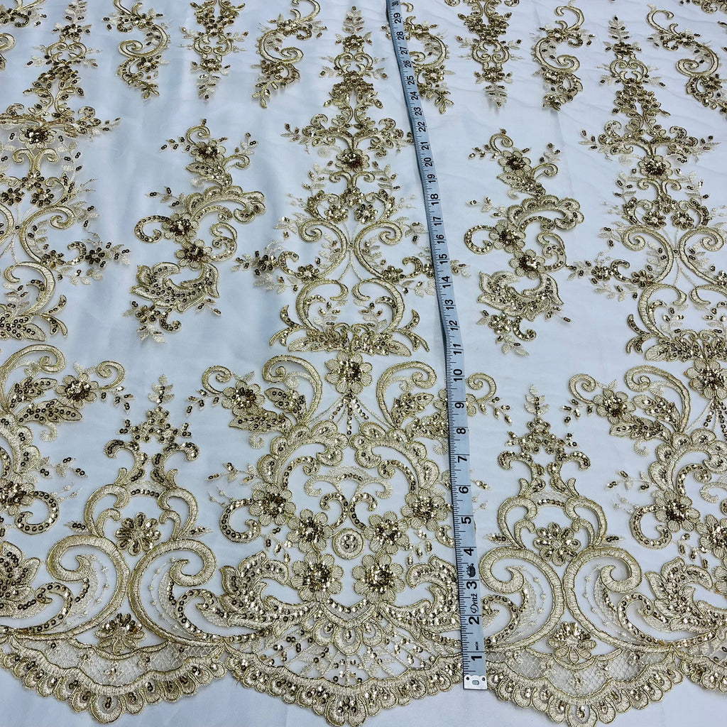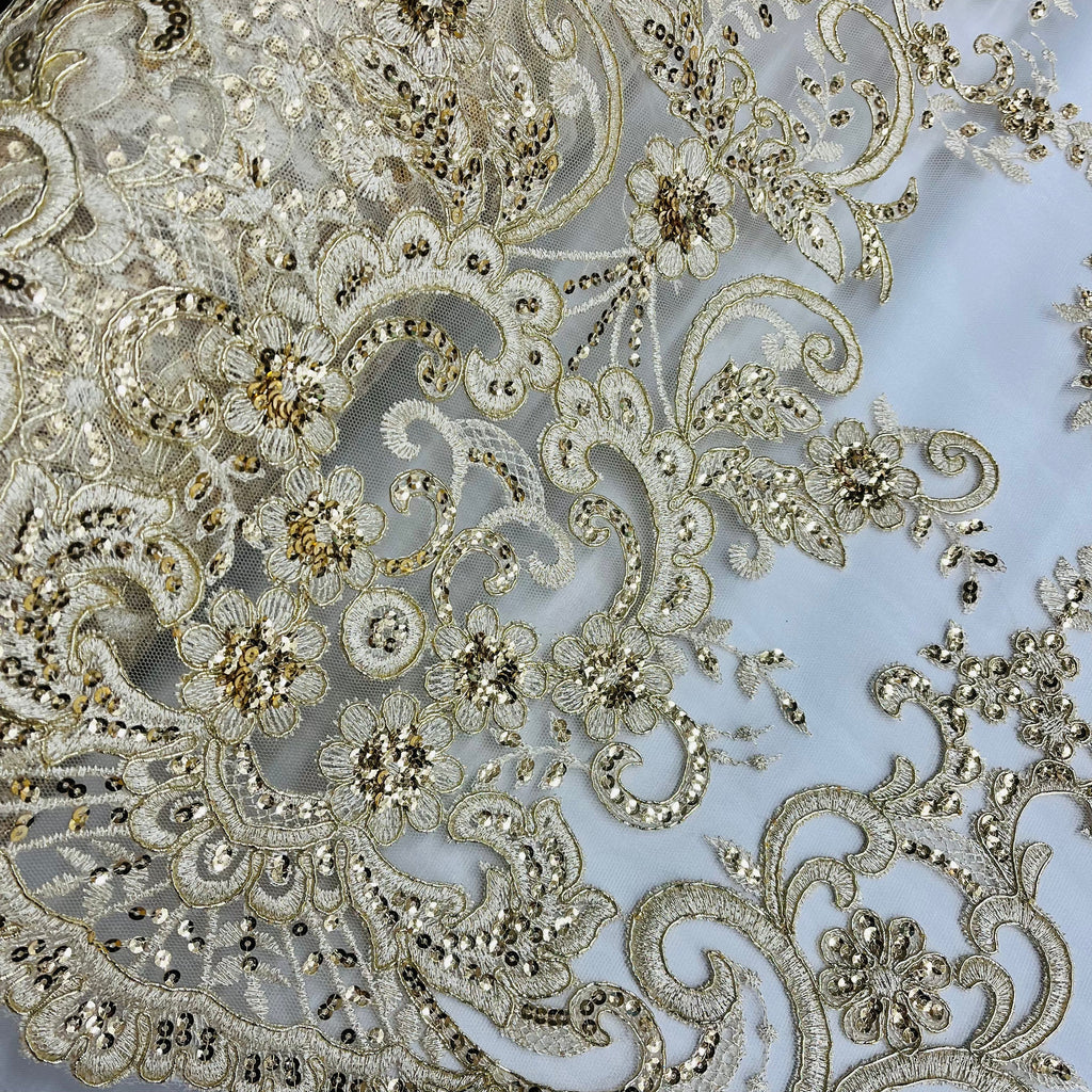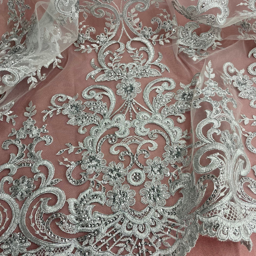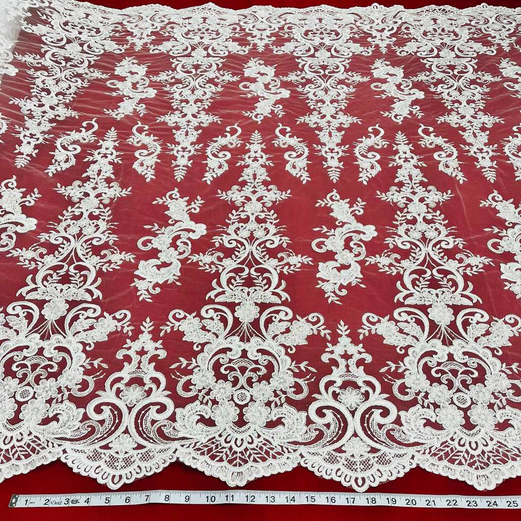 Ethereal Elegance: Beaded & Corded Bridal Embroidered Lace Fabric on Polyester Net Mesh| Lace USA - 97213W-SB