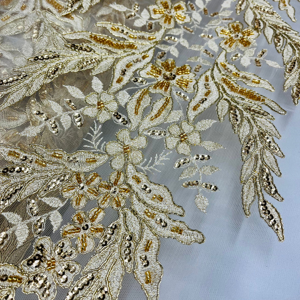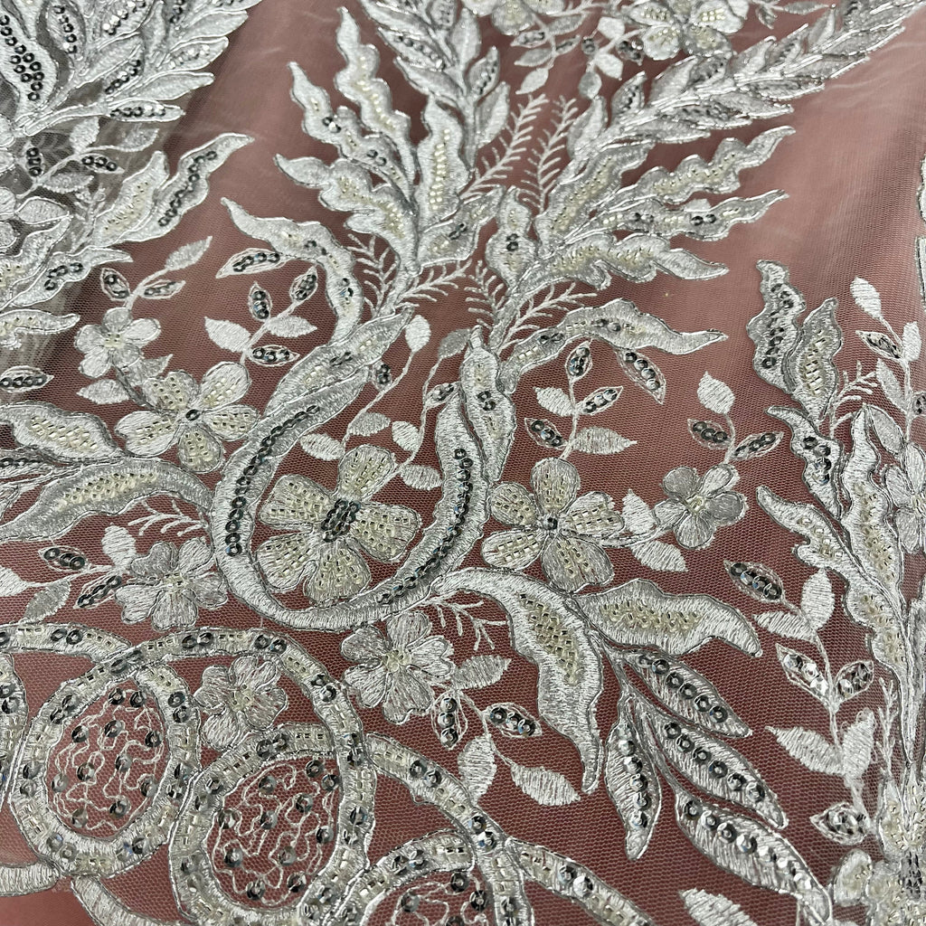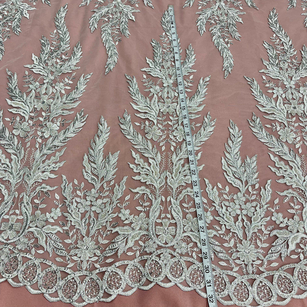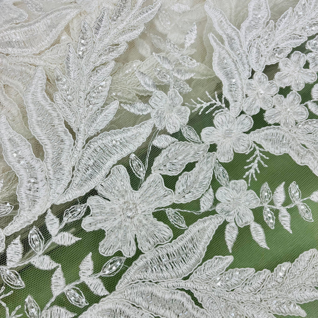 Exquisite Bridal Elegance: Beaded & Corded Embroidered Lace Fabric | Lace USA - 97221W-HB