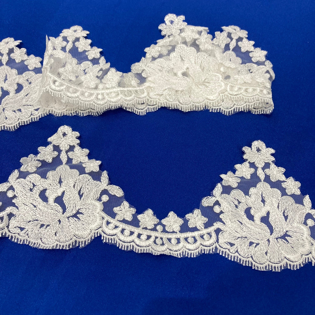 Ideal for veil edging, bridal sewing, quinceañera dress trims, baptismal gowns, and decorative costume accents, this high-quality embroidered lace trim helps bring your vision to life with beauty and grace.