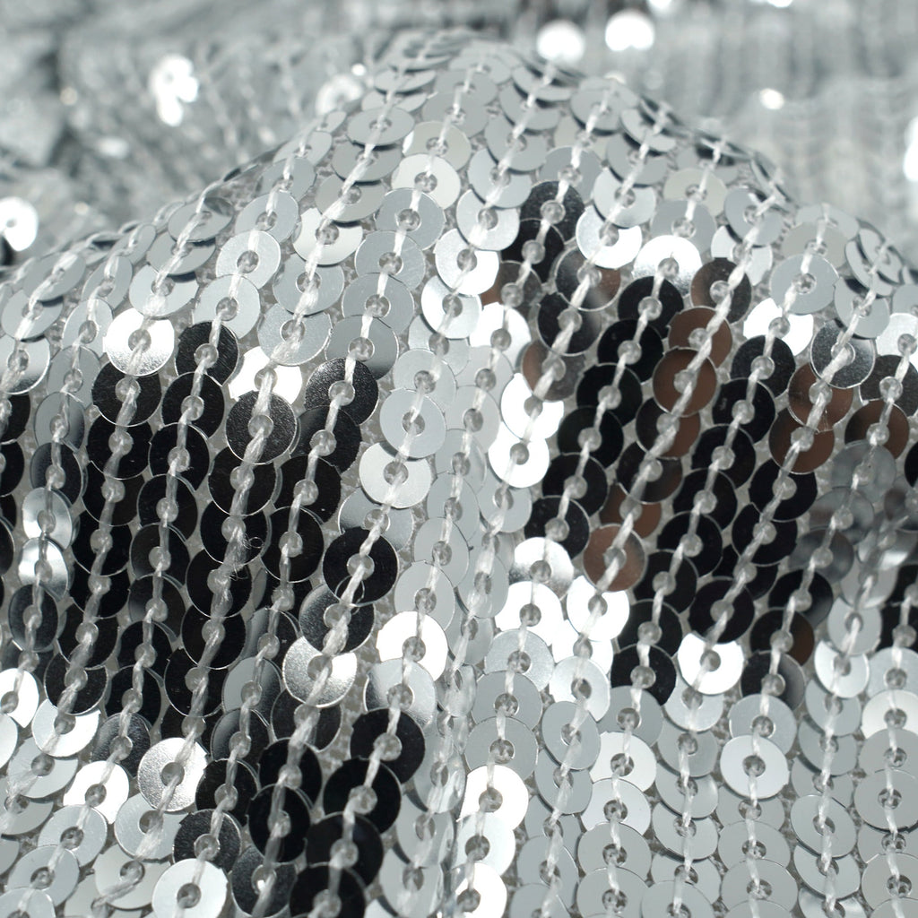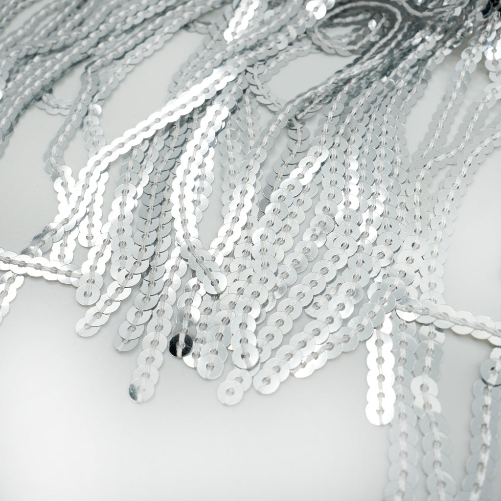A dynamic and eye-catching fabric that combines the elegance of sequins with the movement of fringe. This versatile material is perfect for creating dazzling costumes, vibrant dancewear, or unique couture fashion. The stretch mesh base ensures a comfortable and flexible fit, while the fringe and sequins add a touch of drama and sparkle.