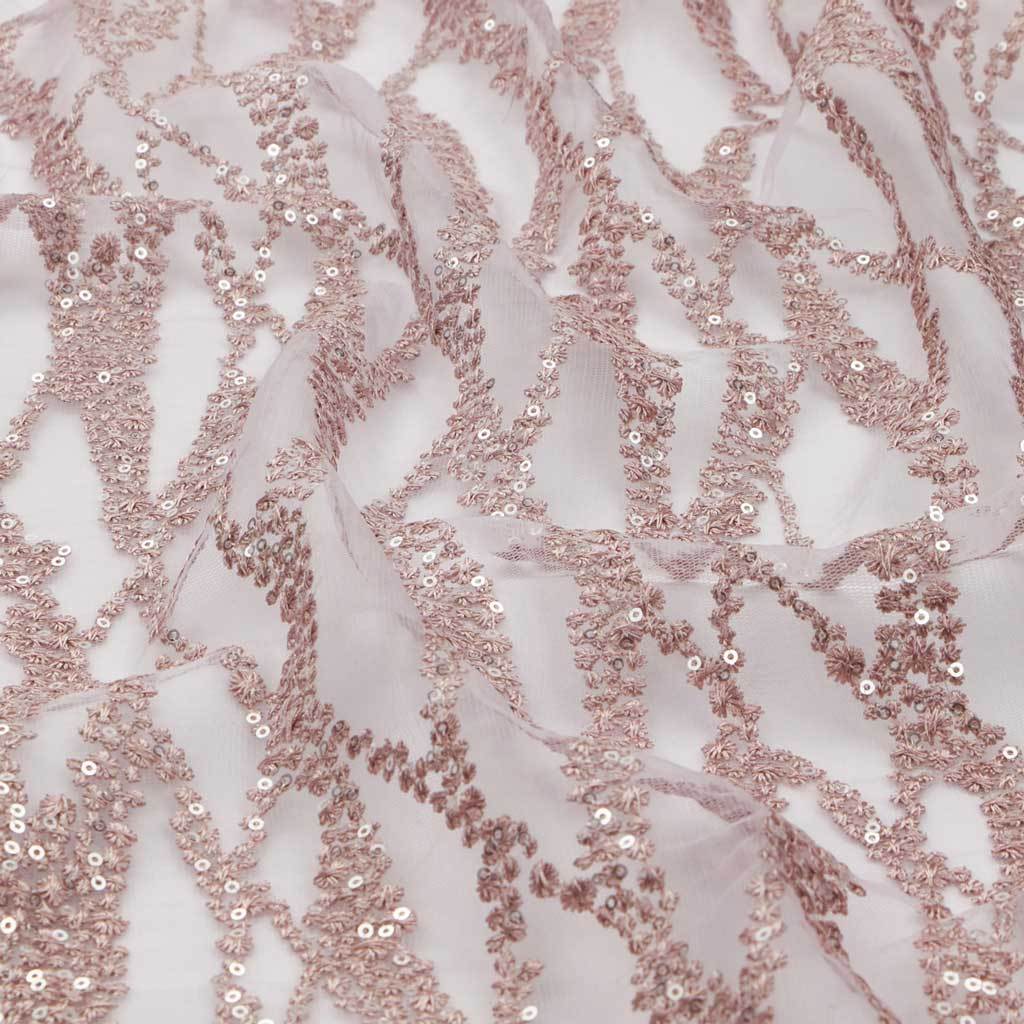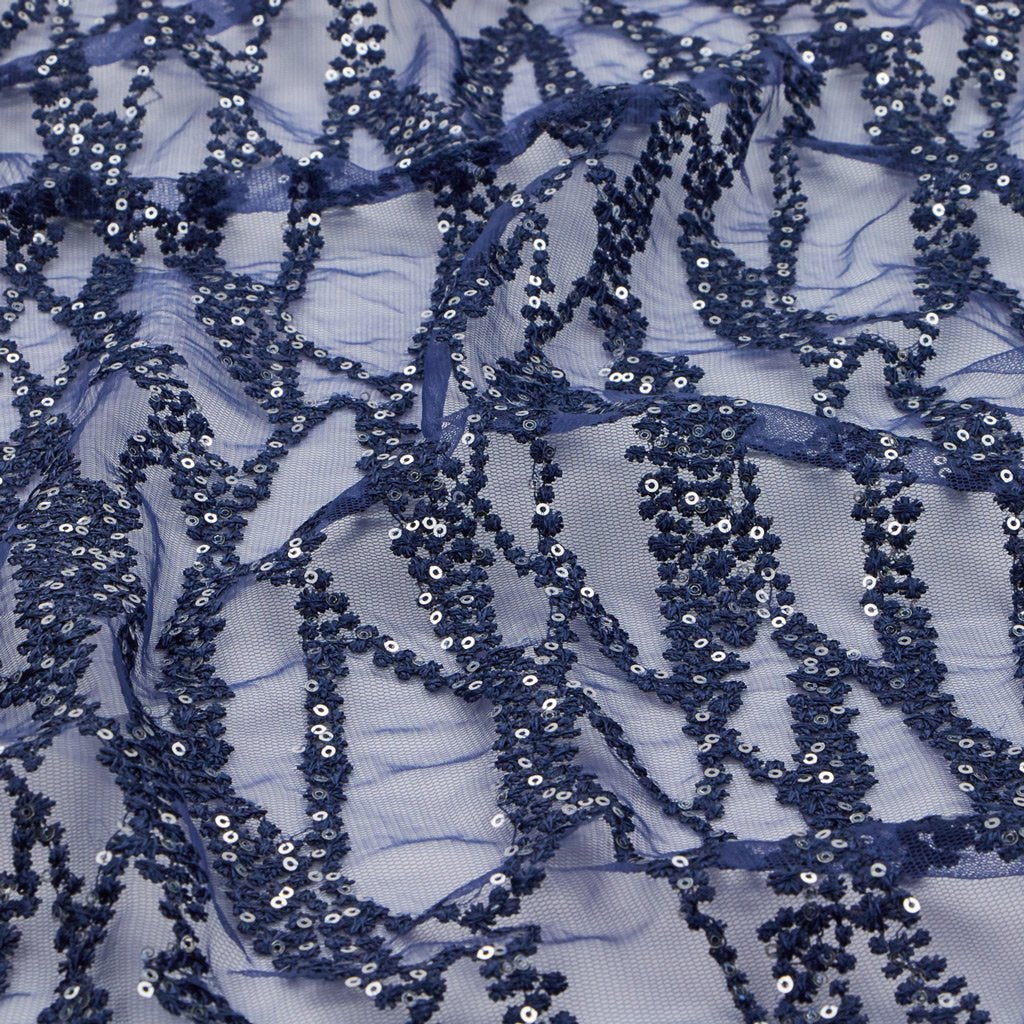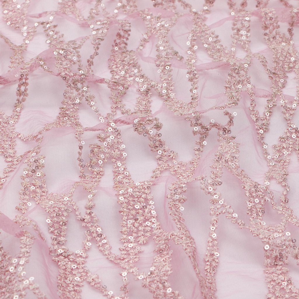 Forget Me Not is a Non-Stretch Polyester Mesh with Embroidered Sequin; ideal for formal designs. This fabric is perfect for creating a sophisticated look with a touch of sparkle. Its unique texture helps create dimension and depth in any design. It's lightweight, flexible, and offers excellent drapability for a perfect fit. This fabric is perfect for special occasions and provides an unforgettable touch of elegance. It's an ideal choice for making garments that epitomize luxury. Its high-quality construction ensures durability and beauty for years to come. Its soft, comfortable texture is sure to make it a cherished piece for years to come. Forget Me Not Embroidered Mesh Fabric is perfect for creating an unforgettable look for any special occasion.