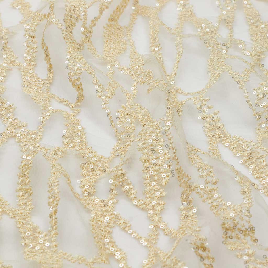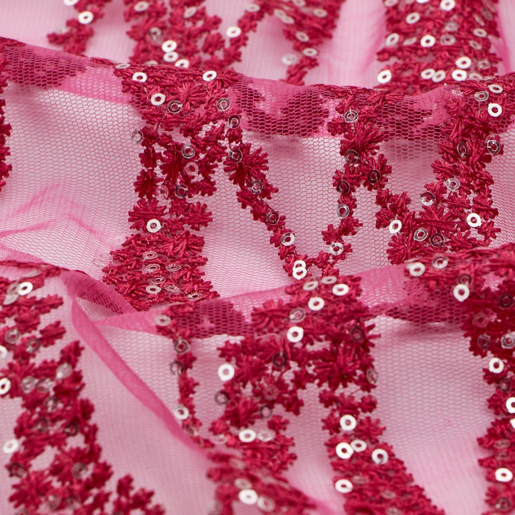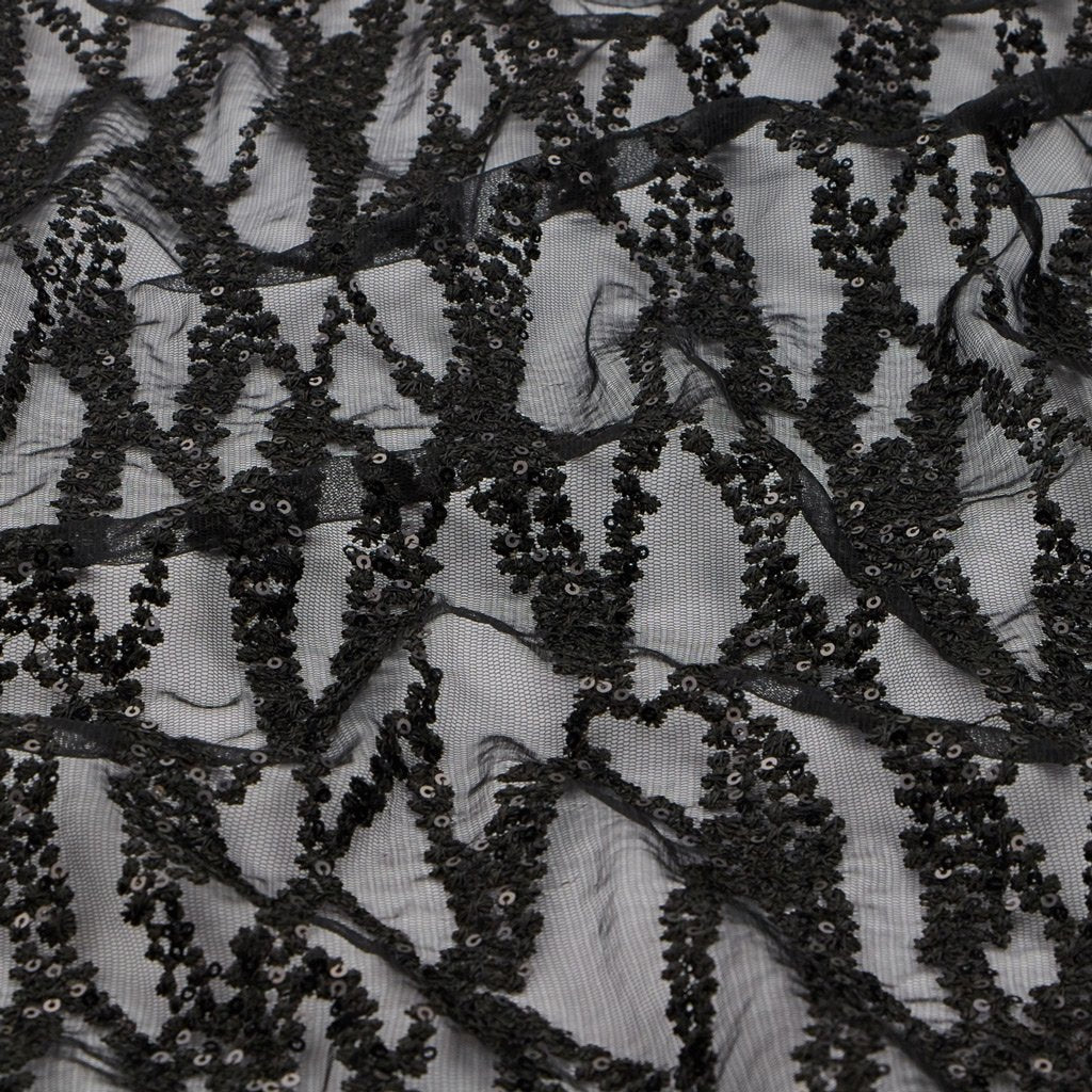 Forget Me Not is a Non-Stretch Polyester Mesh with Embroidered Sequin; ideal for formal designs. This fabric is perfect for creating a sophisticated look with a touch of sparkle. Its unique texture helps create dimension and depth in any design. It's lightweight, flexible, and offers excellent drapability for a perfect fit. This fabric is perfect for special occasions and provides an unforgettable touch of elegance. It's an ideal choice for making garments that epitomize luxury. Its high-quality construction ensures durability and beauty for years to come. Its soft, comfortable texture is sure to make it a cherished piece for years to come. Forget Me Not Embroidered Mesh Fabric is perfect for creating an unforgettable look for any special occasion.