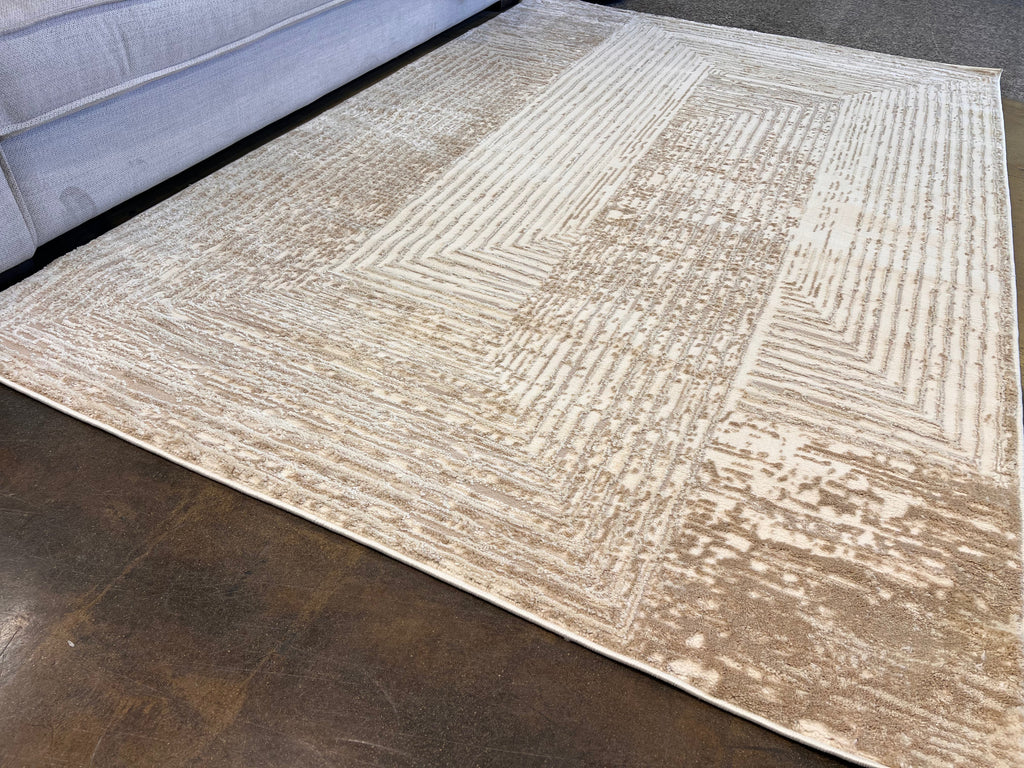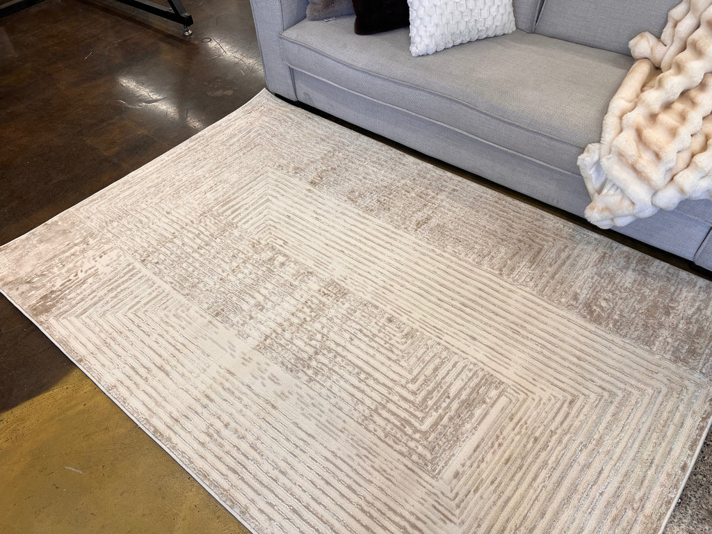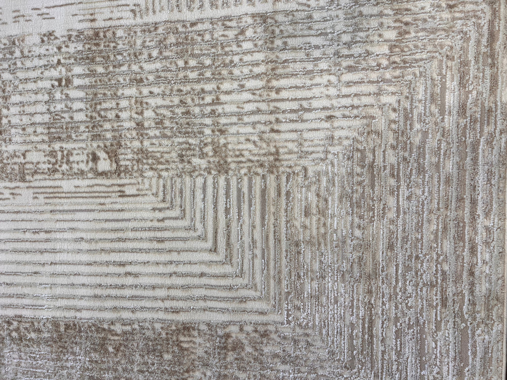 Geometric Linear Crème Beige Rug in Warm Mocha Tone-on-Tone High-Low Texture - NUDE 21