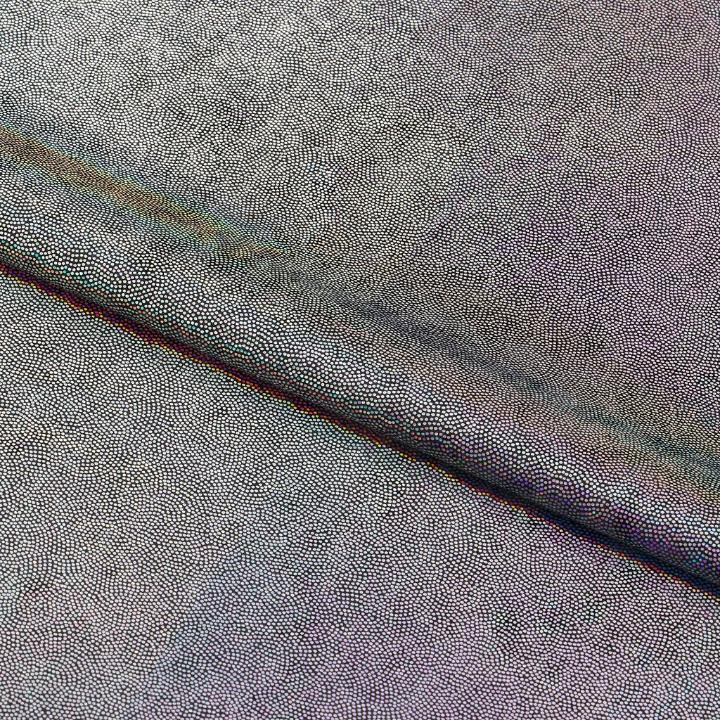Make a bold statement in Glorious– a 4-way stretch polyester Spandex with a patented all-over foil print! Featuring a high-quality ground and finely-dotted foiling, this eye-catching shimmer will instantly elevate your look. Perfect for dancewear, gymnastics and performance costumes, this amazing fabric is designed to move with you and transform any outfit into something extraordinary. This luxurious fabric is perfect for figure flaunting fashions and is ideal for those special occasions where you want to make a lasting impression. Its 4-way stretch will allow you to move with ease while its vibrant, shimmery finish ensures you will never blend into the crowd.