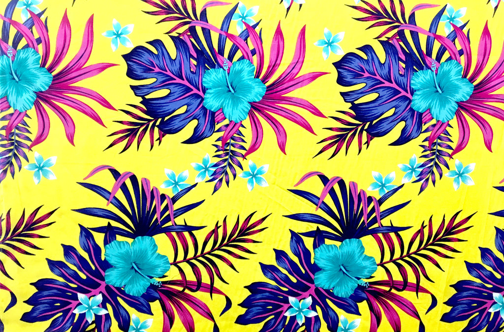 Hibiscus Monstera & Plumeria Flower Clusters Cotton Fabric | Islands Fabric