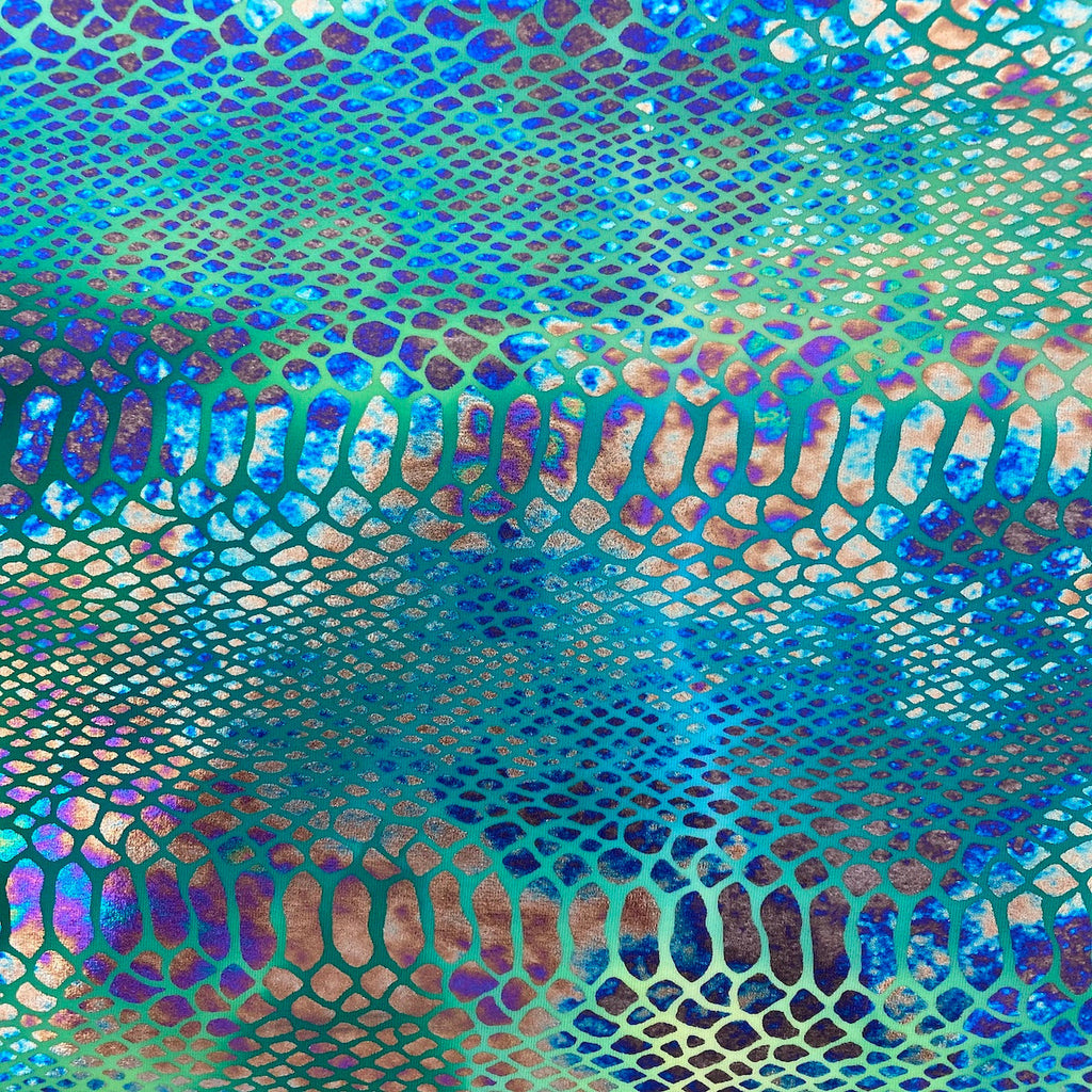 Holographic Tie Dye Taipan Snake Skin Nylon Spandex Fabric