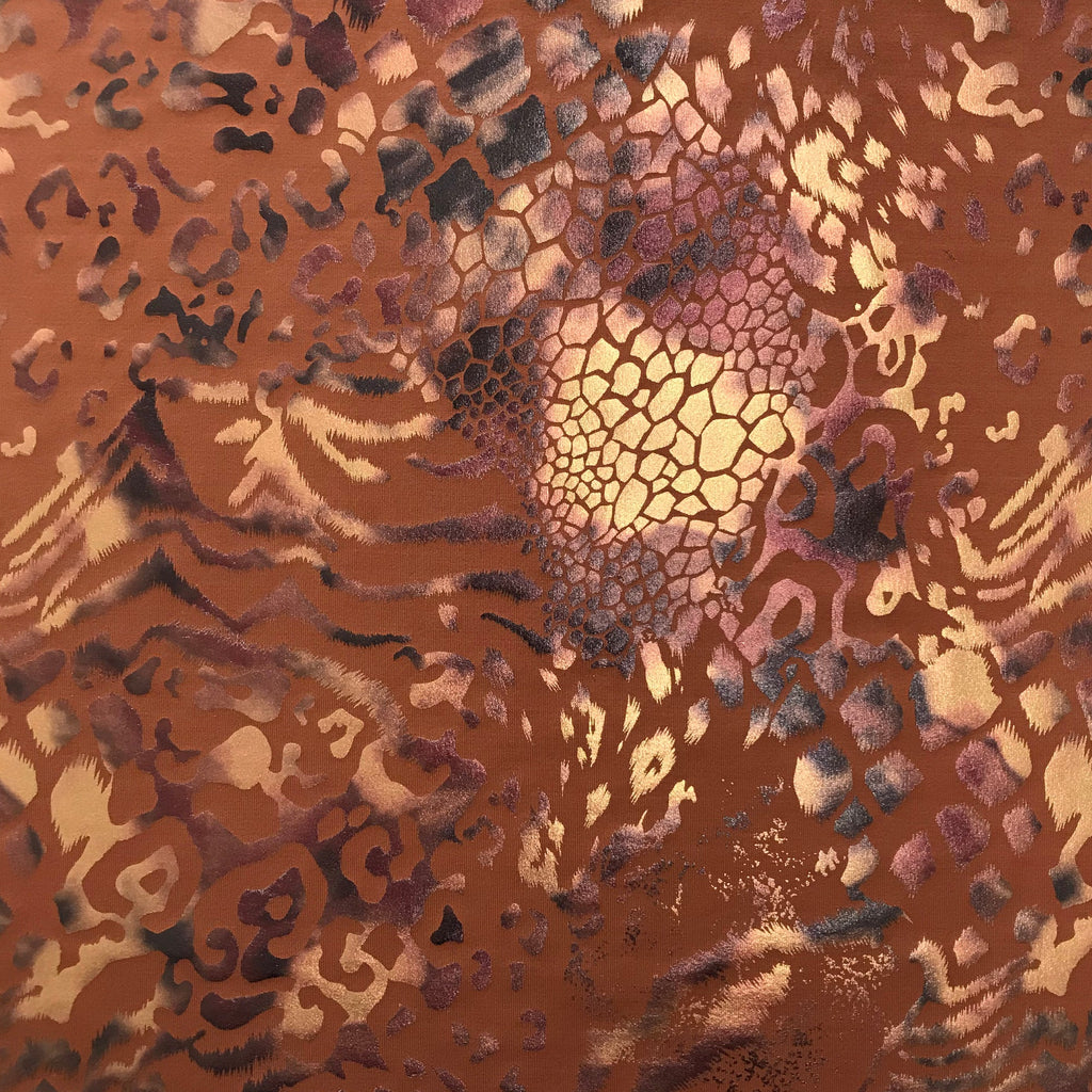 Jungle Patch Foil Printed Superflex is a collection of heavy-weight compression nylon spandex tricot featuring a wild metallic animal foil print. With its opaque 4-way stretch base, these fabrics are ideal for activewear fashion including leggings and sports bras. An ideal choice for any activewear project, Jungle Patch Foil Printed Superflex combines stylish design with uncompromising durability. Its high compression fabric will hold strong, even after multiple cycles of washing and wearing. The quick-drying fabric and four-way stretch fit offer comfort and freedom of movement along with enhanced performance. The sturdy construction and heavy-weight fabric of Jungle Patch Foil Printed Superflex is sure to tackle any activity. Find coordinating solid colors in our Superflex Heavy Compression Spandex collection.