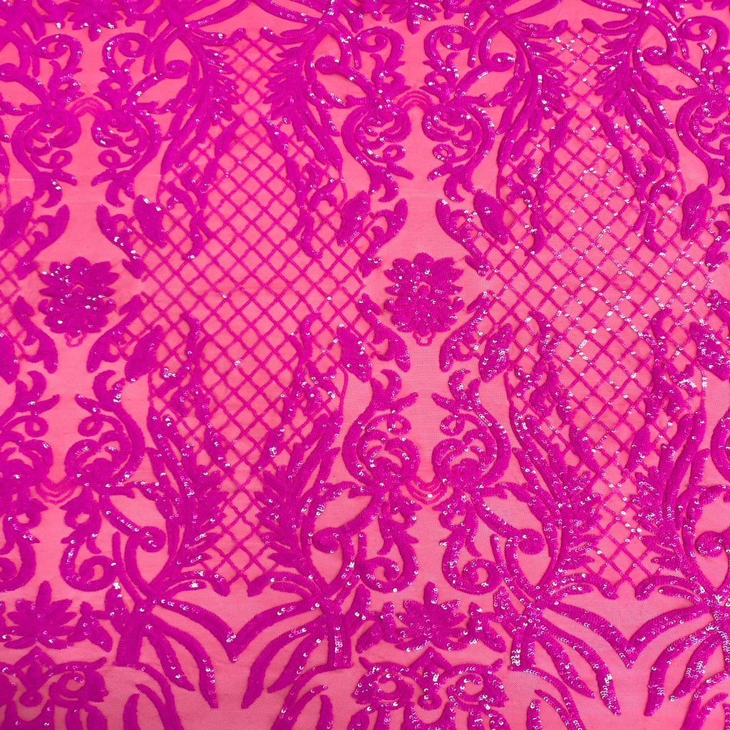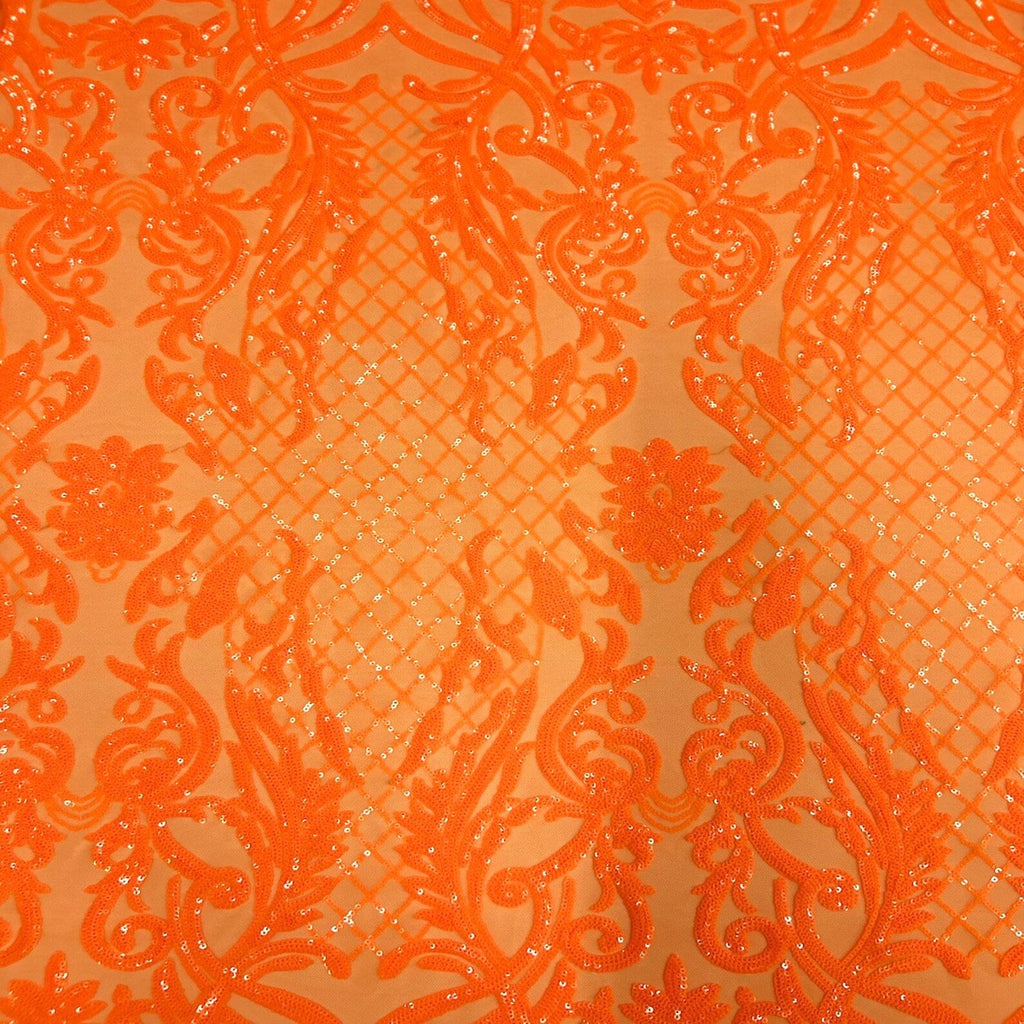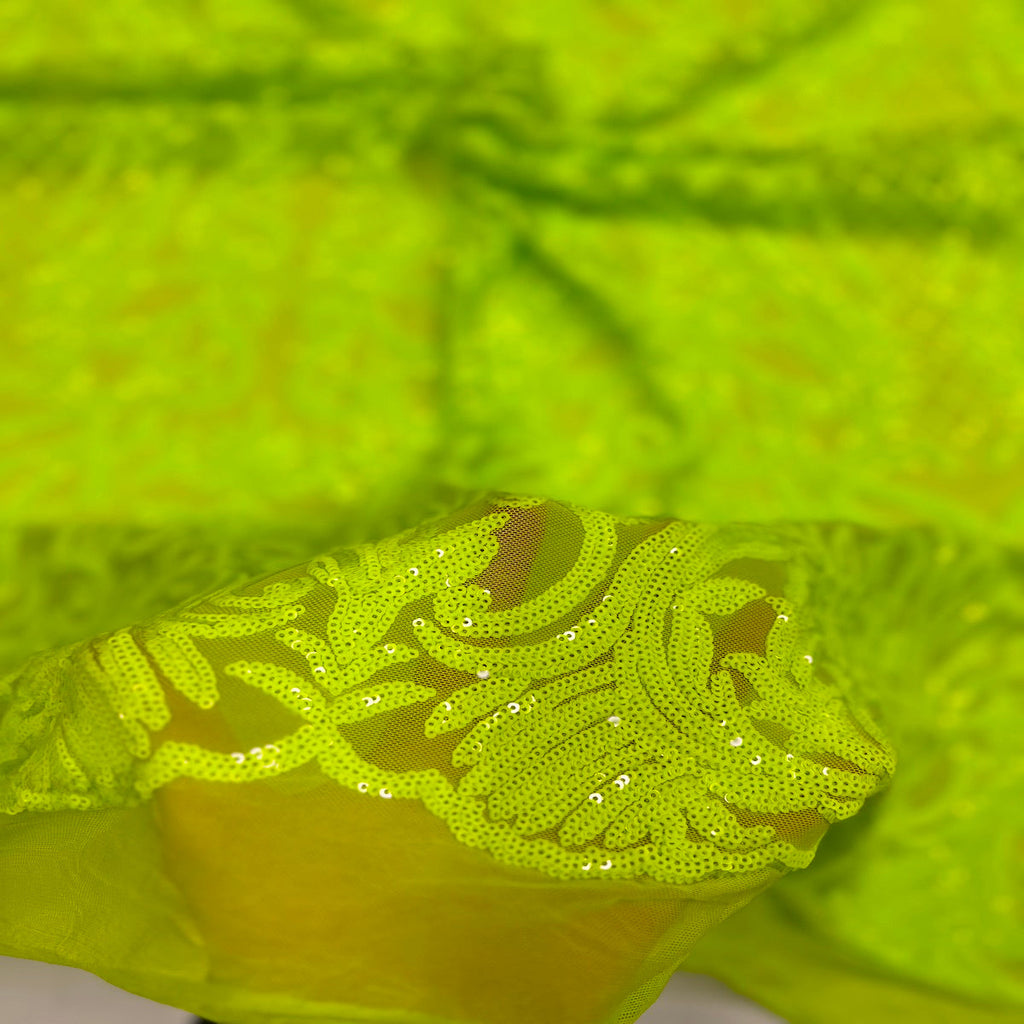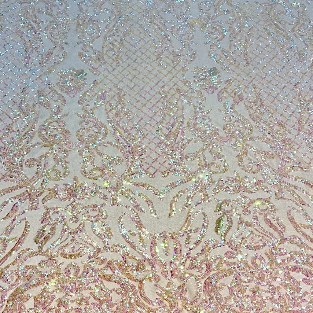 This beautiful and elegant Luna Sequins Lace Fabric is truly one of a kind. Crafted with a luxurious four-way stretch nylon mesh backing, this fabric features a stunning sequin design that captivates and dazzles. Sold by the yard, you can create custom lengths to suit your needs; if more than one yard is purchased, it will arrive as a continuous piece (for example, two yards will be delivered as a 60" x 72" piece).