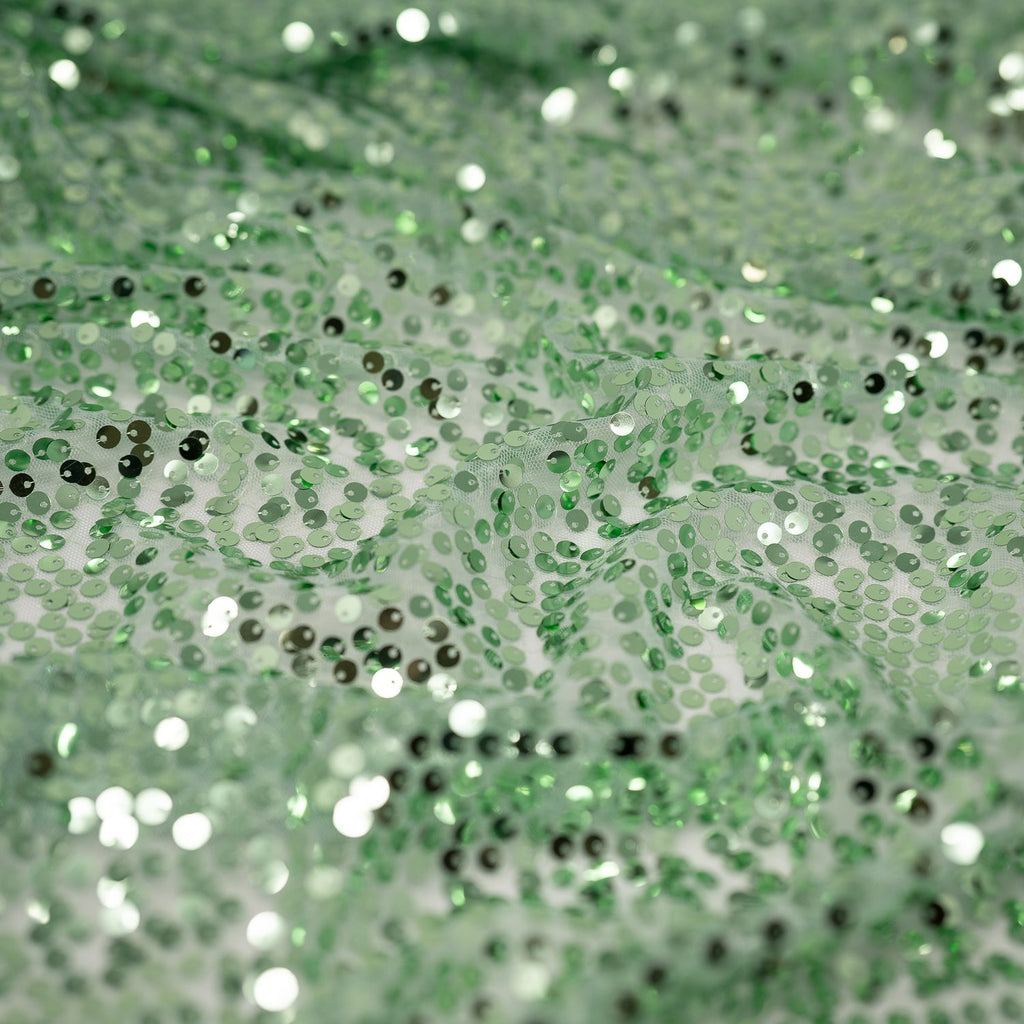 Mandy Mesh Sequin features sequin embroidered on a mesh base. This fabric is excellent for formal wear applications. This fabric is perfect for any special occasion, featuring a luxurious feel without compromising on durability or quality. It's an eye-catching fabric that will make a lasting impression. This fabric is extremely versatile, perfect for fashioning gowns, veils, bras, and even costumes. With an abundance of colorful and unique style options, you can create a beautiful, one-of-a-kind look that is sure to turn heads.
