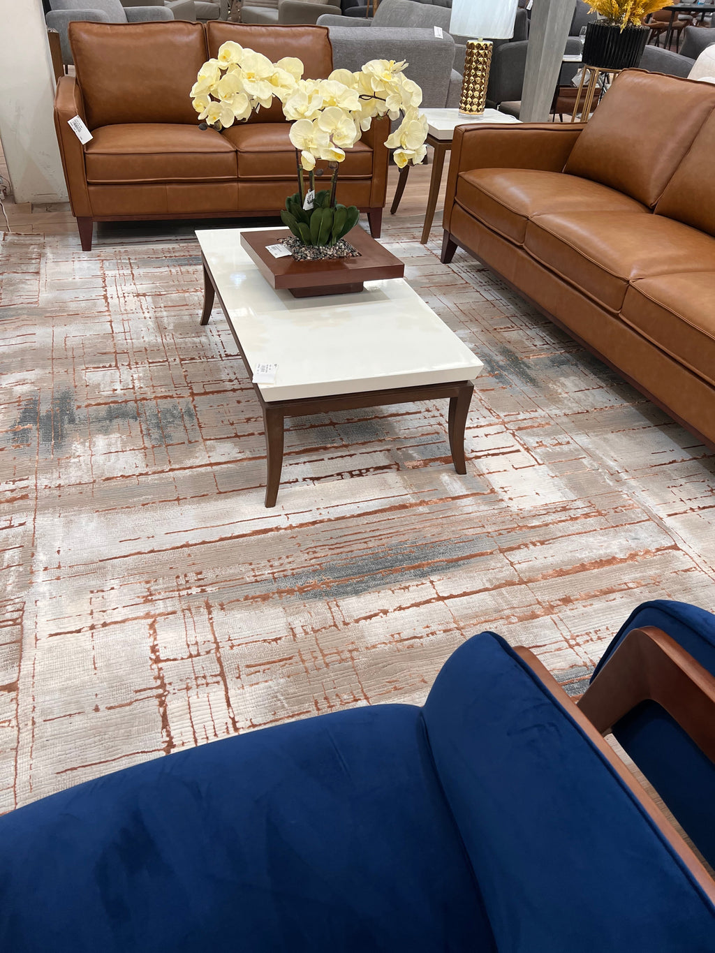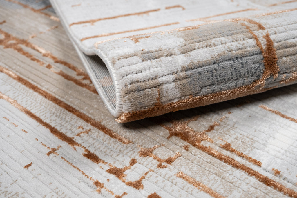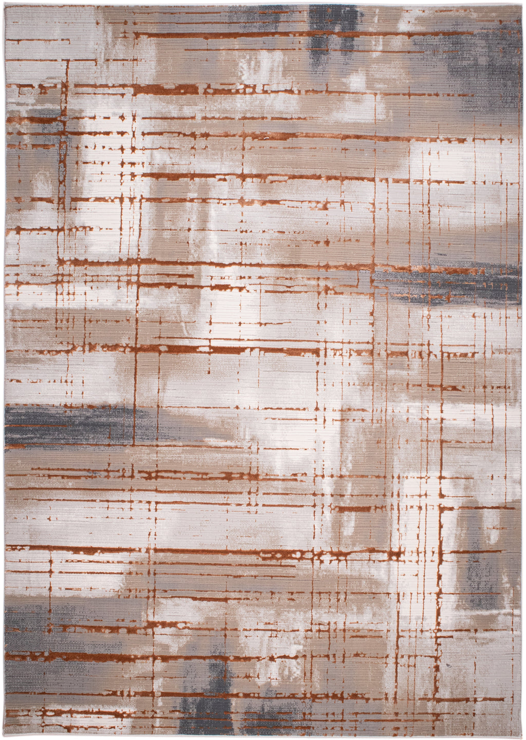 Crème Rug with Charcoal, Silver & Mocha Abstract with Bronze Tone-to-Tone Geometric High-Low Texture - METZ 4203.