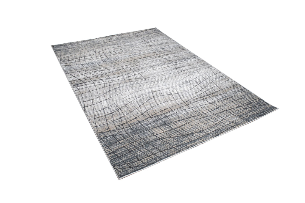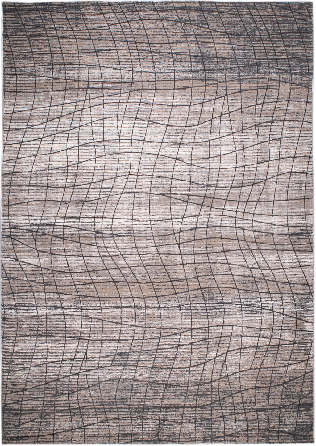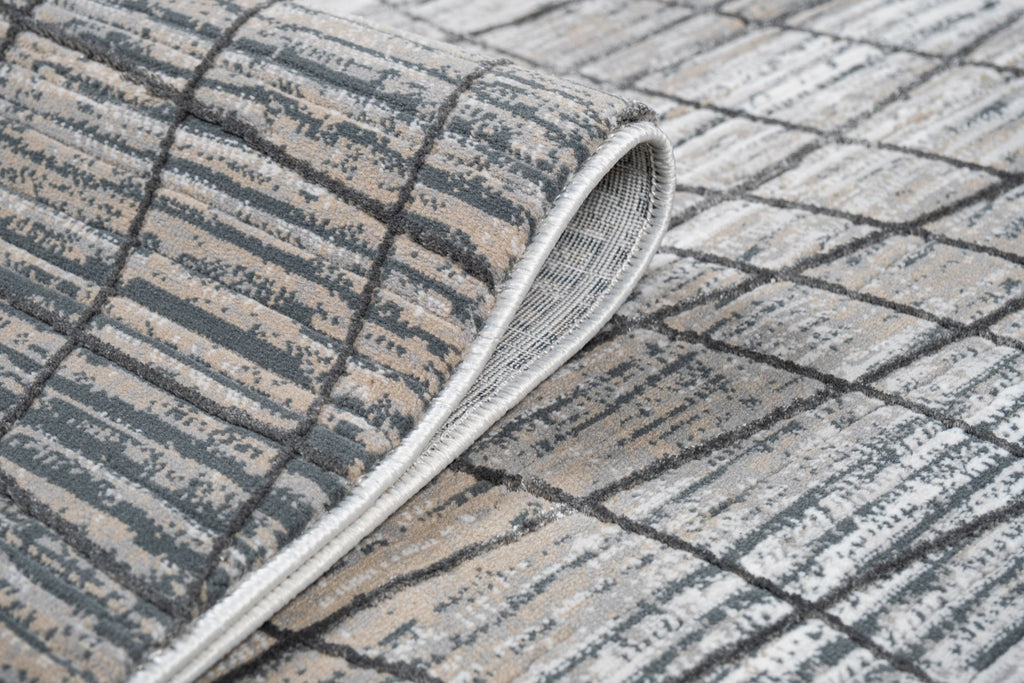 Crème Rug with Mocha & Beige Abstract Design and Charcoal Checker High-Low Pattern - METZ 4204.