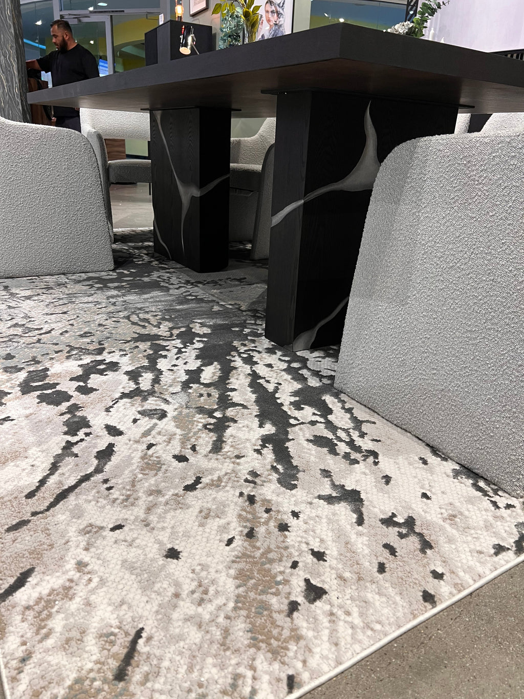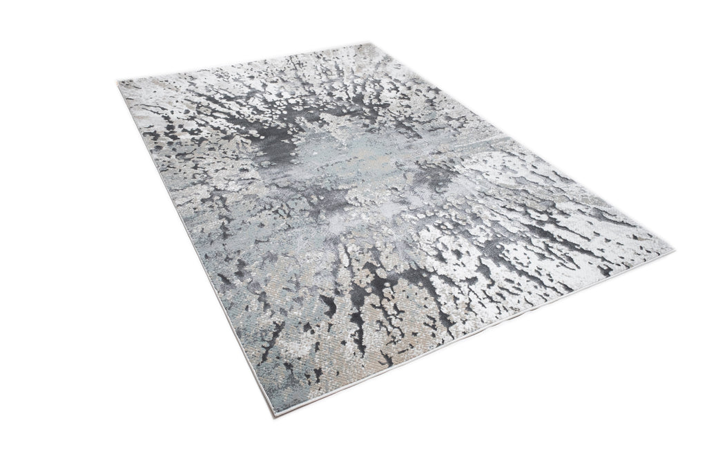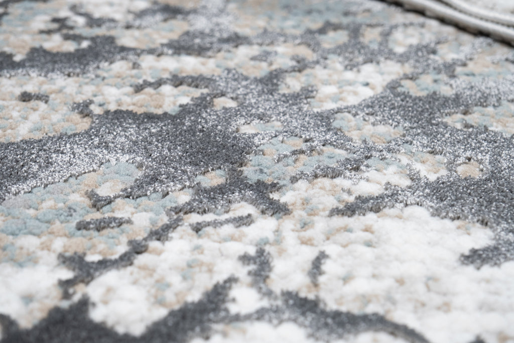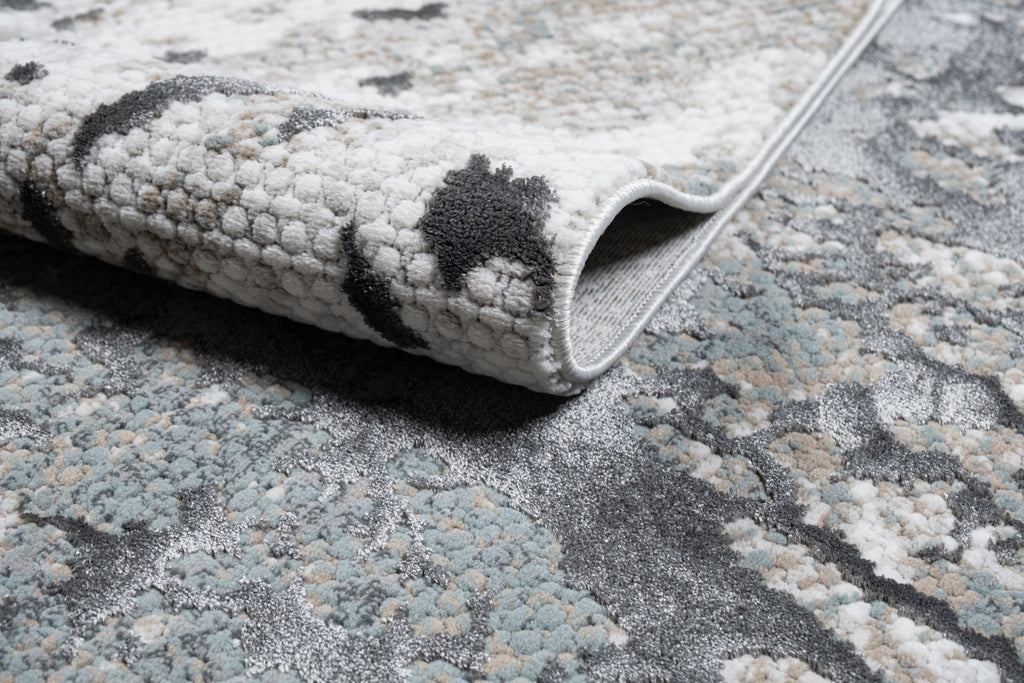 Contemporary Crème Rug with Tone-to-Tone on Charcoal, Silver Gray, Teal, and Warm Mocha High-Low Detail - METZ 4209.