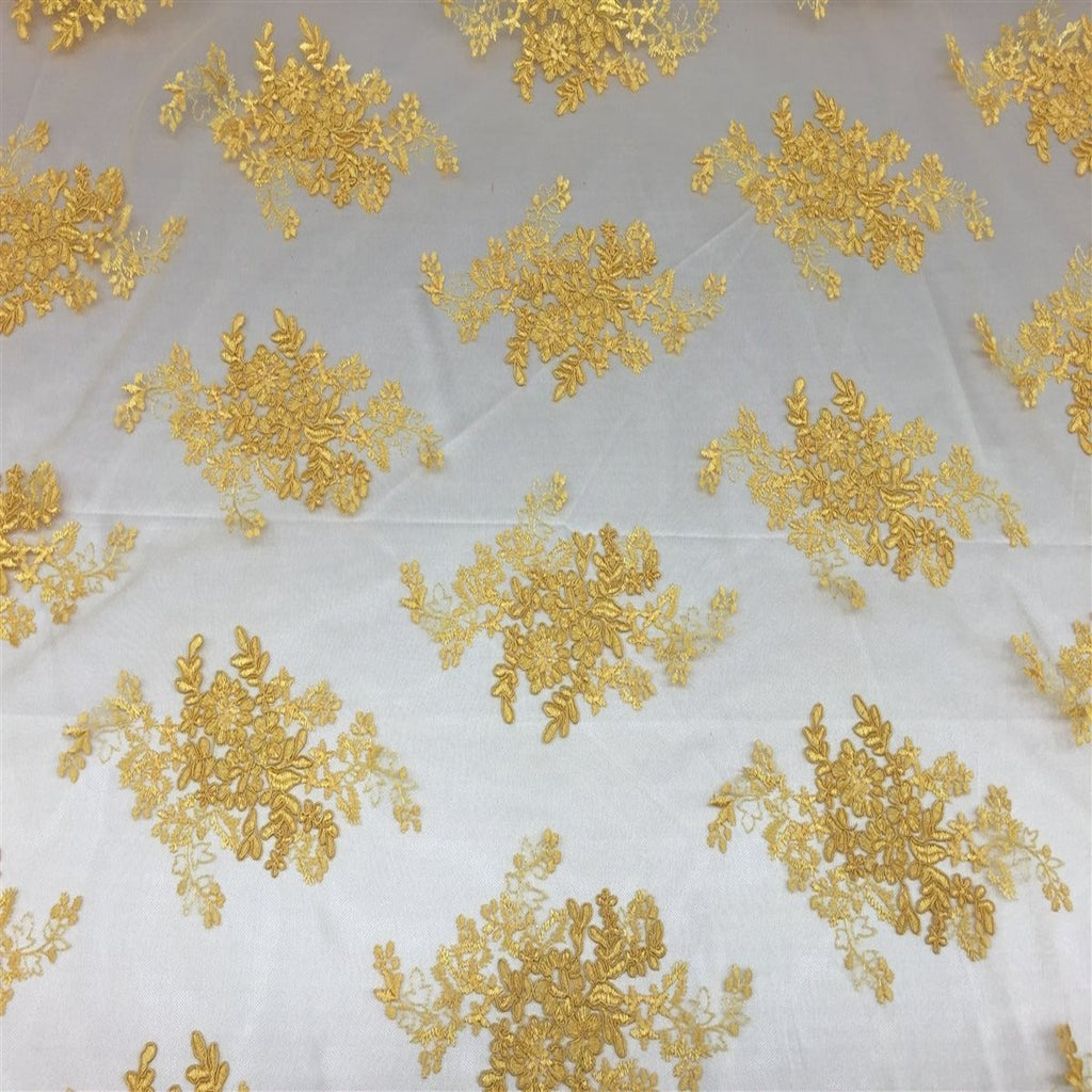 Discover the exquisite beauty of our embroidered lace fabric, featuring a stunning floral design that is perfect for a variety of occasions. Crafted with a delicate mesh backing, this fabric is intricately embroidered with vibrant colored threads, making it a standout choice for your next project. Its unique charm and elegance will elevate any creation, whether it's a dress for a special event or stylish accessories.