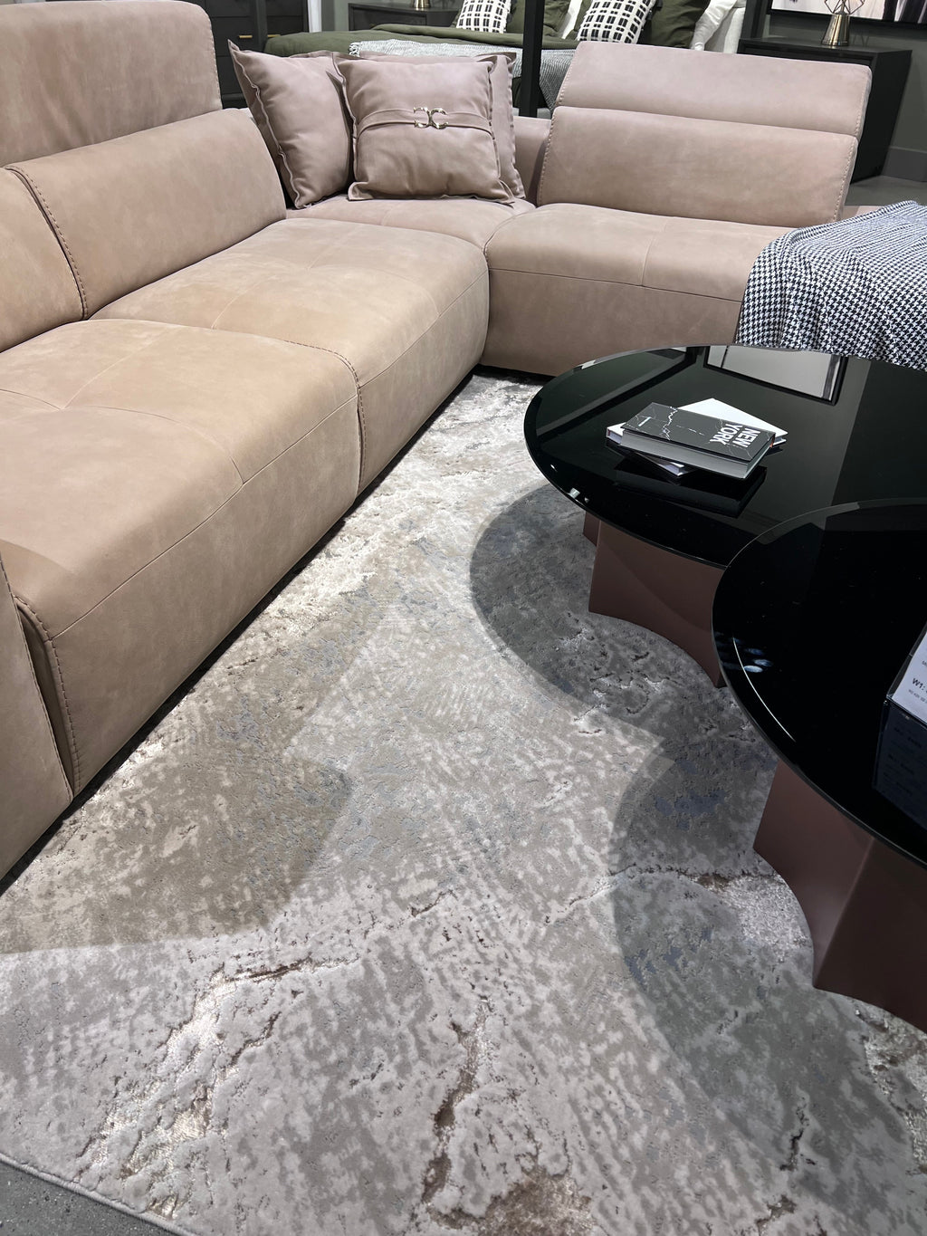 Immerse yourself in the softness and opulence of this carpet, which presents a multi-textural experience with its multi-level pile and the captivating shimmer that enlivens your space.