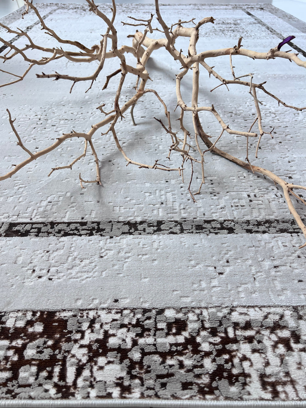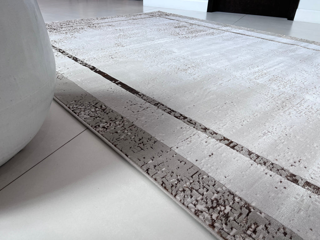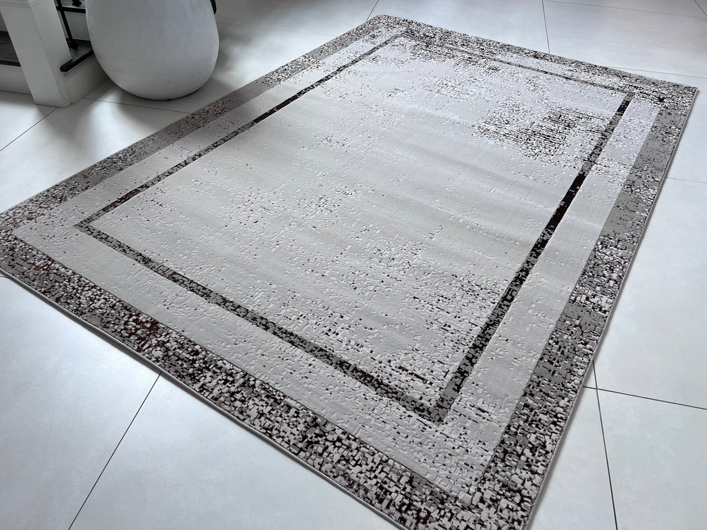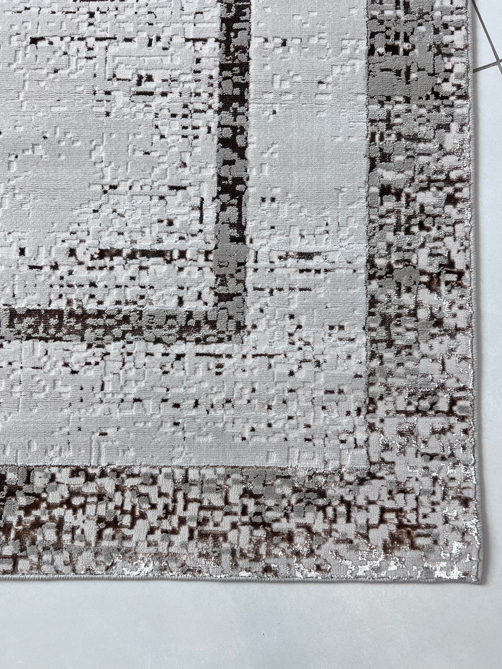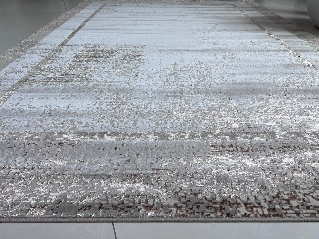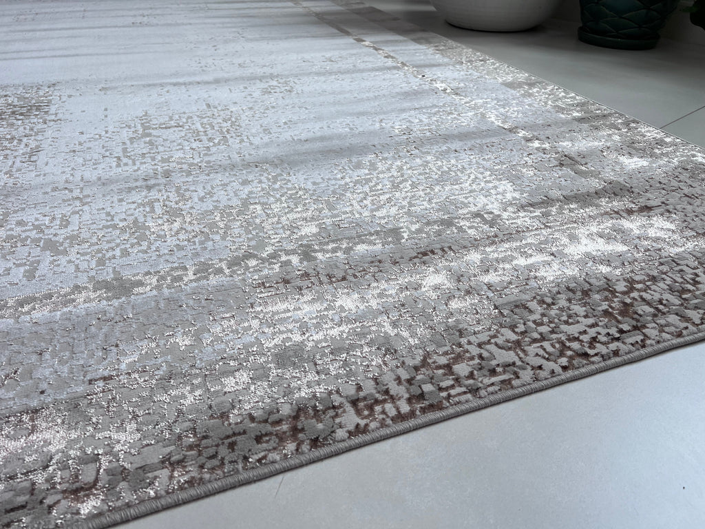 Polyester Silver with Gold Viscose Blend Border Design Rug/Carpet - Style# Maximus 245 - Color-Changing Flat Weave Rug