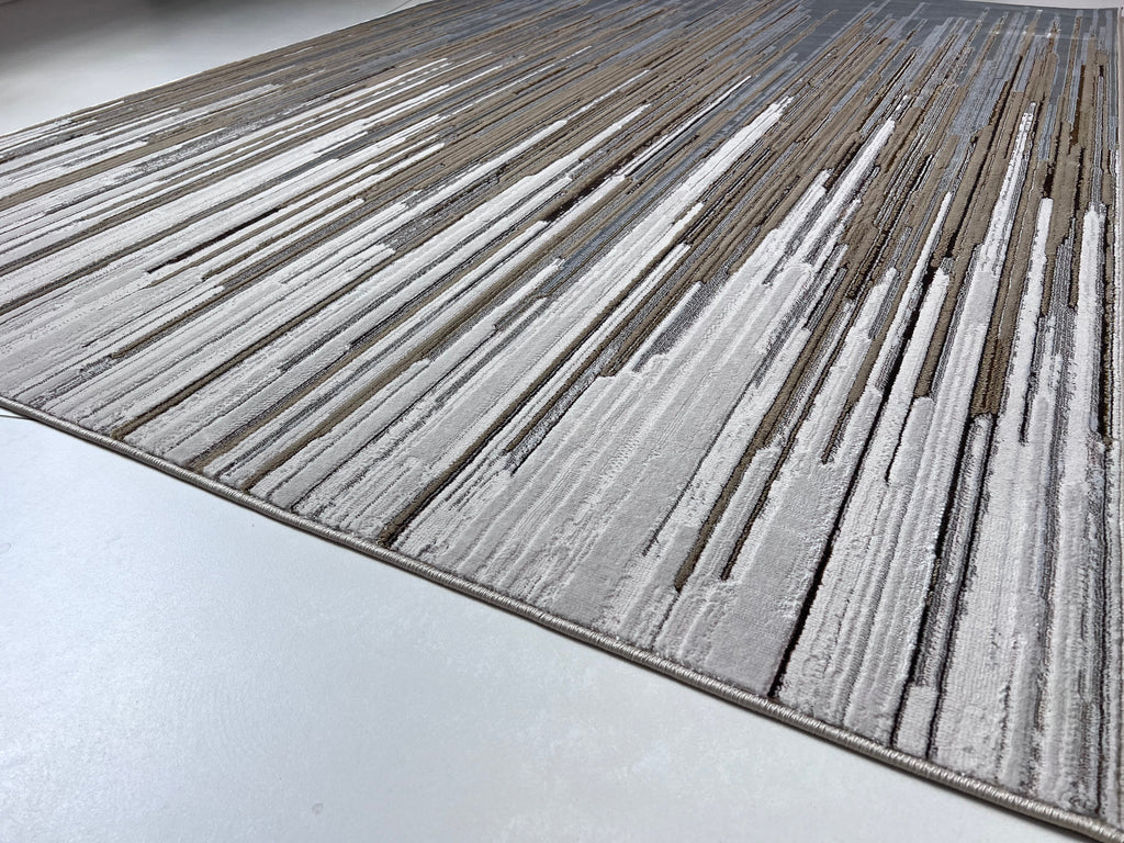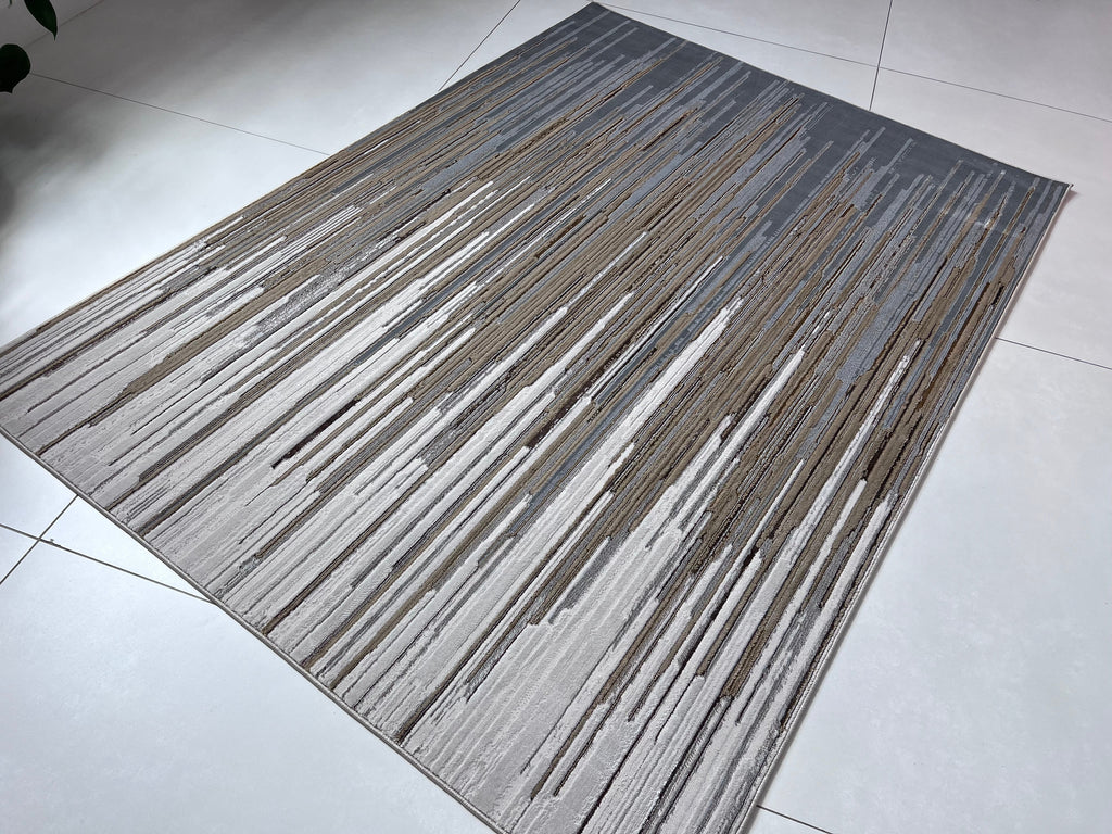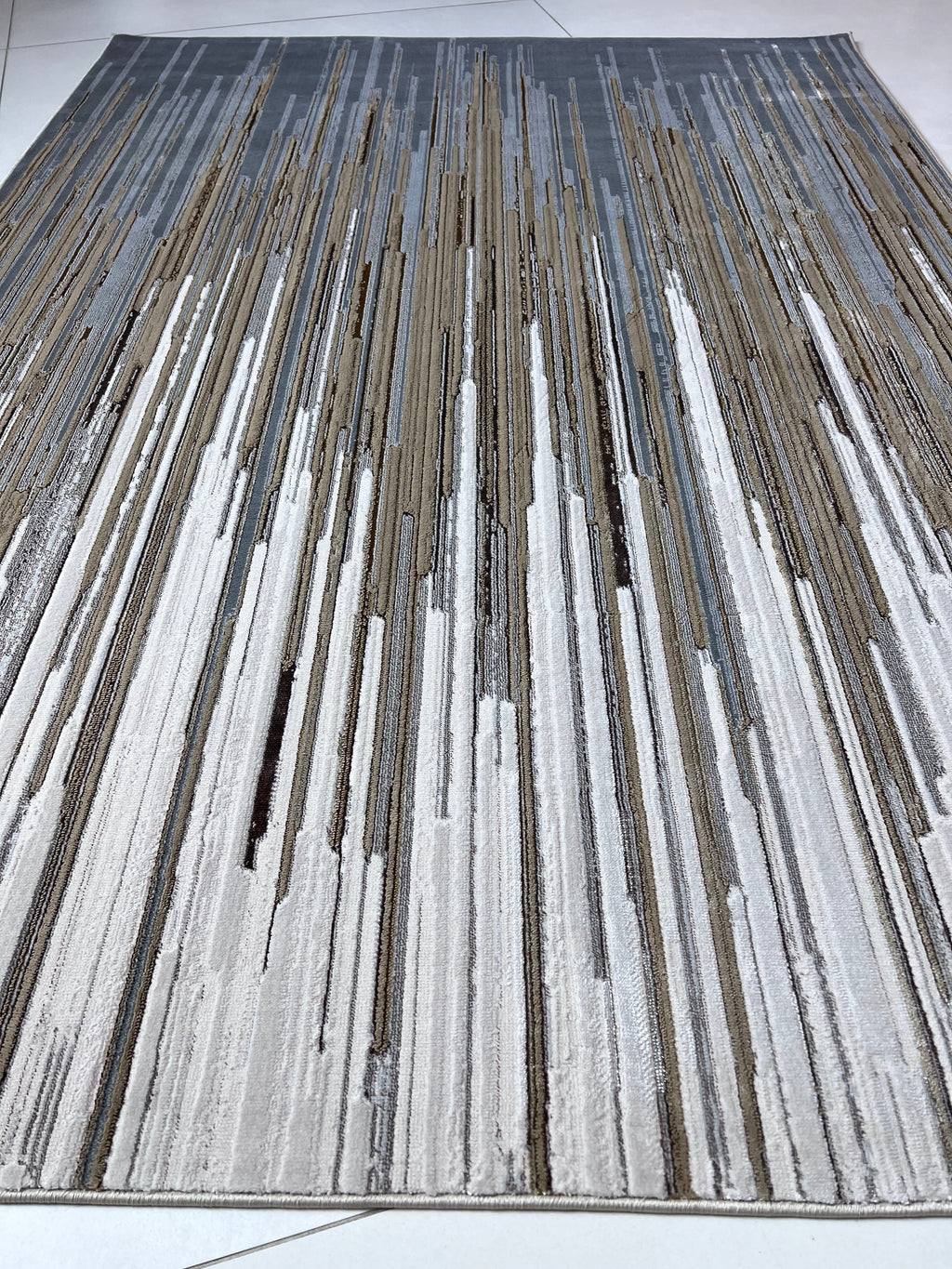 Polyester Silver with Gold Viscose Blend Geometric Design Rug/Carpet - Style# Maximus 241 - Color-Changing Flat Weave Rug