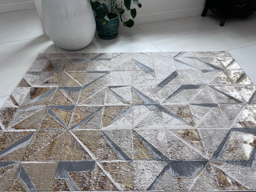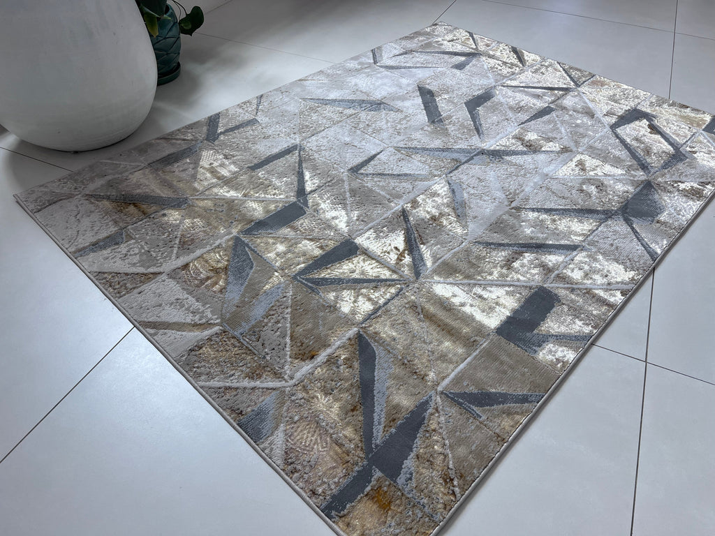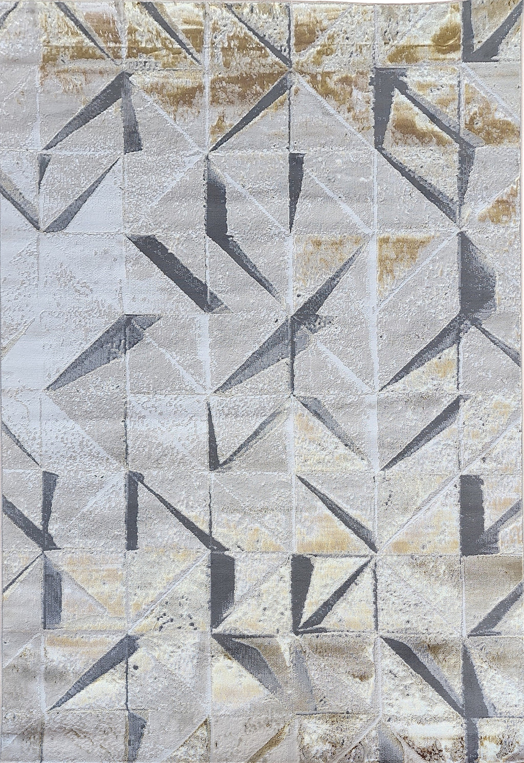 Polyester Silver with Gold Viscose Blend Geometric Design Rug/Carpet - Style# Maximus 242 - Color-Changing Flat Weave Rug