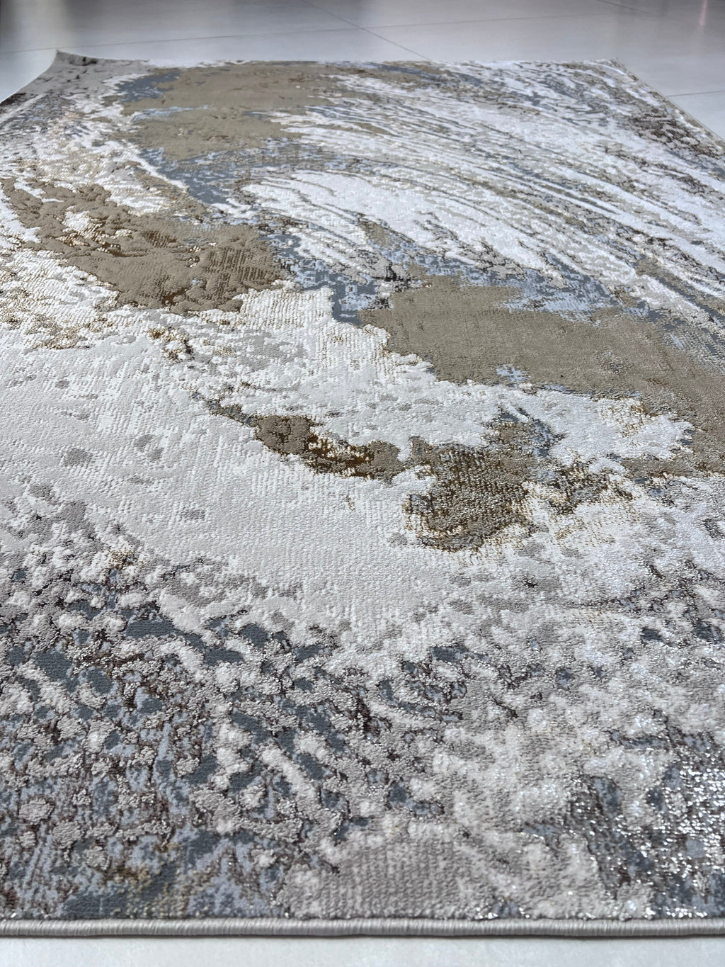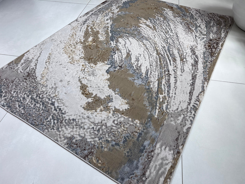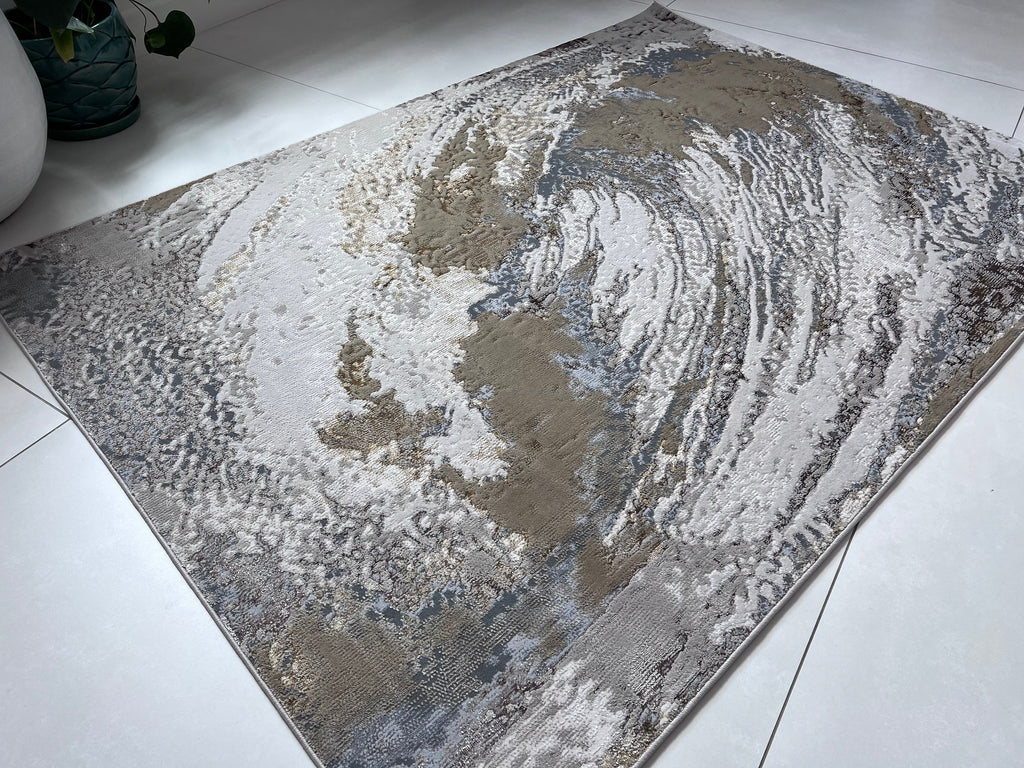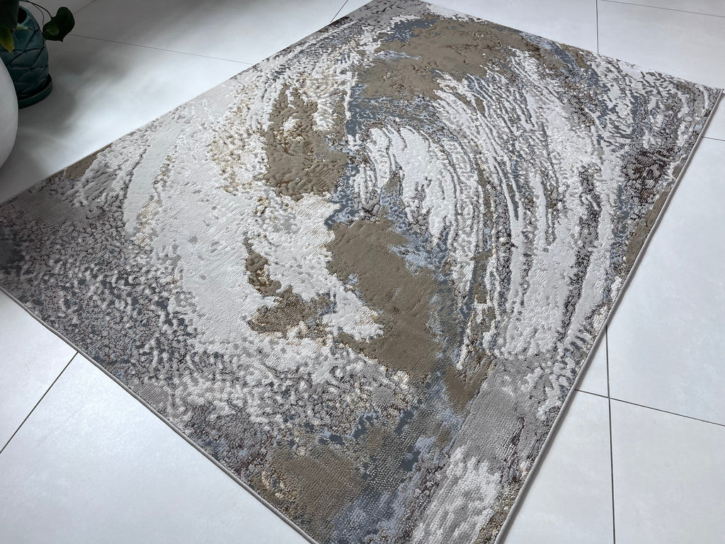 Polyester Silver with Gold Viscose Blend Swirl Design Rug/Carpet - Style# Maximus 240 - Color-Changing Flat Weave Rug
