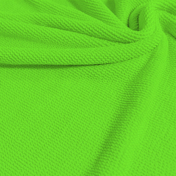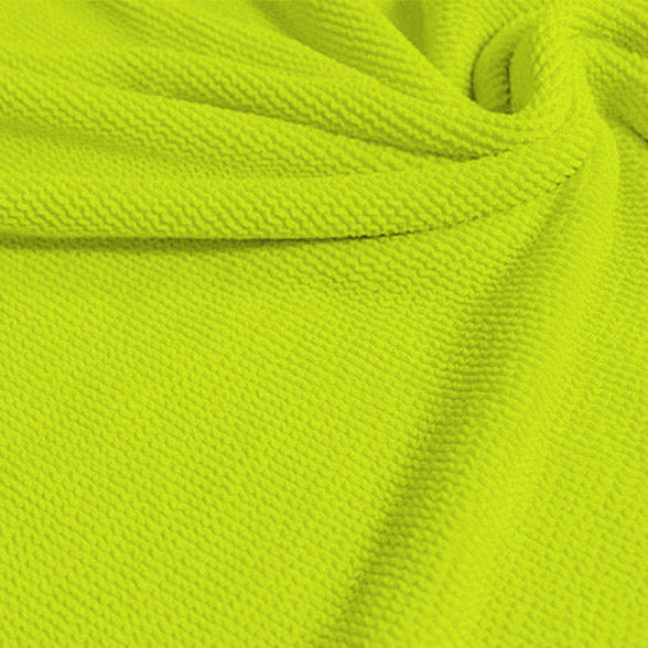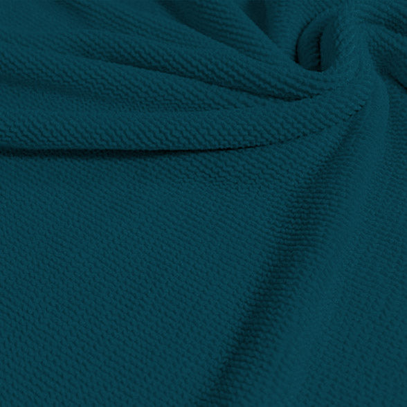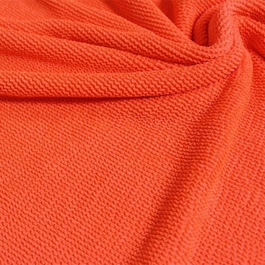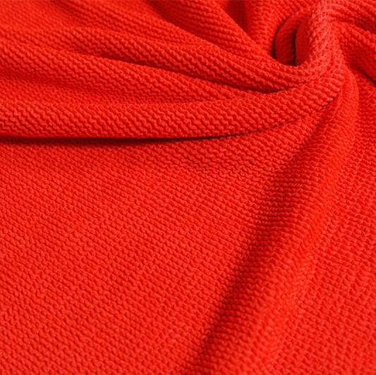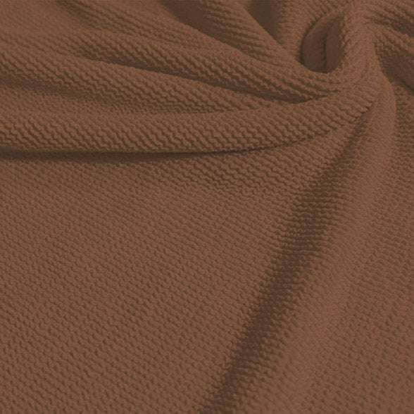 Popcorn is a Polyester Spandex Jacquard knit with incredible stretch and amazing recoil! This 4-way stretch fabric is soft and is ideal for swimwear, resort fashion and dance. Popcorn fabric creates a comfortable fit that doesn't sacrifice style or movement. It's perfect for clothing that needs to keep up with your active lifestyle. It's also great for creating versatile garments that can easily transition from day to evening. With a light weight and firm drape, this fabric is an excellent choice for figure-hugging silhouettes.