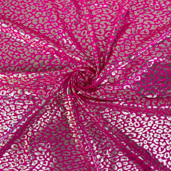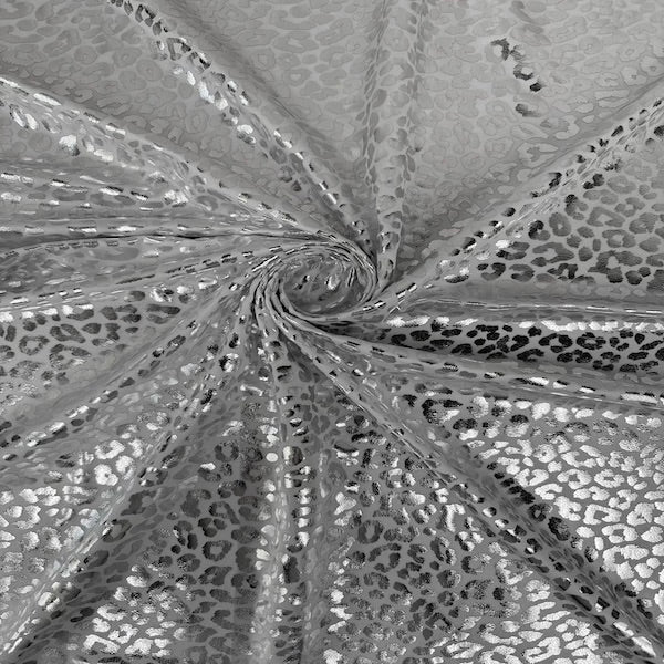 This stunning Sahara Leopard Foil Print Nylon Spandex Fabric is designed to captivate with its eye-catching foil leopard print on a premium nylon spandex material. The perfect blend of style and stretch makes it ideal for crafting unique and comfortable apparel or accessories, adding a playful sophistication to your creations.