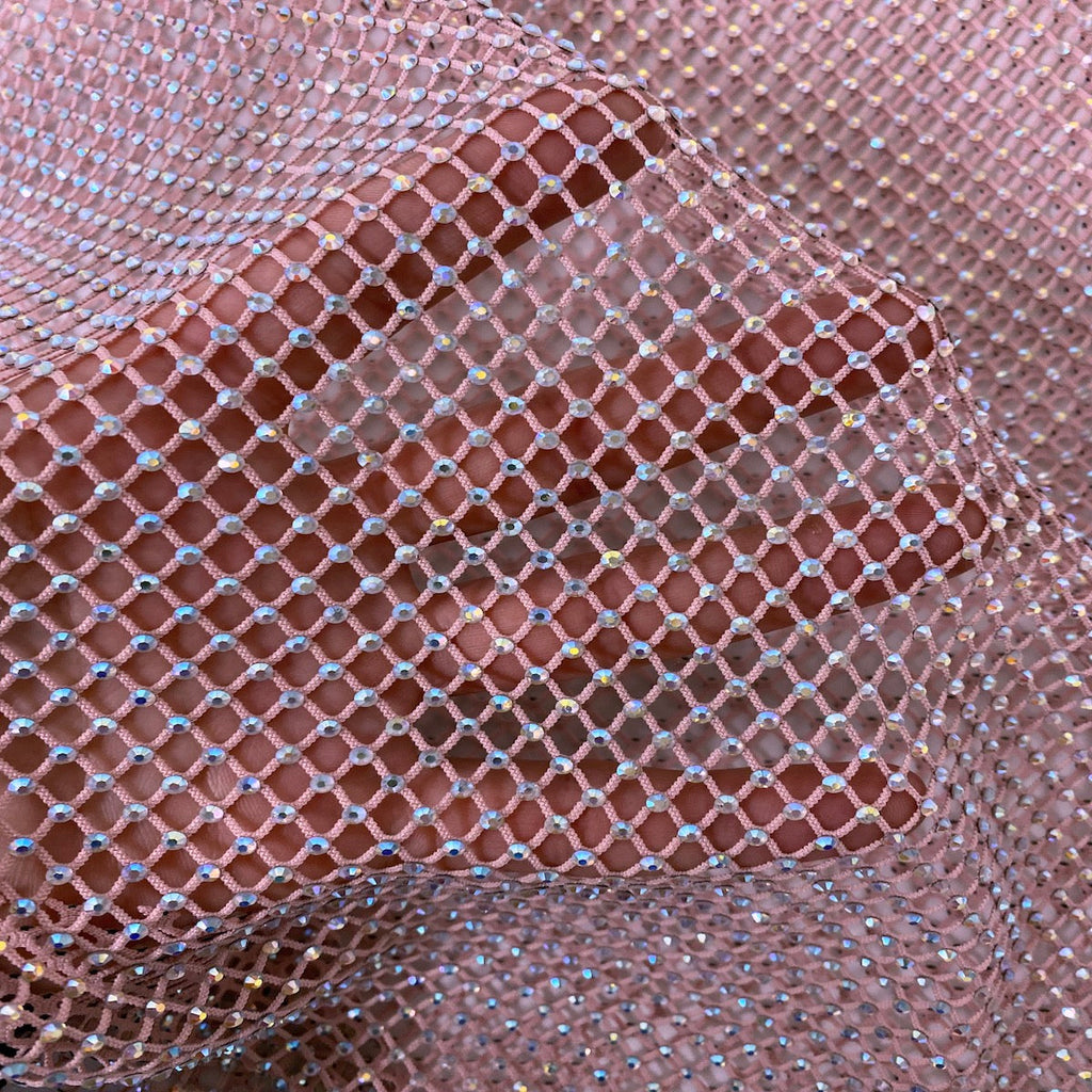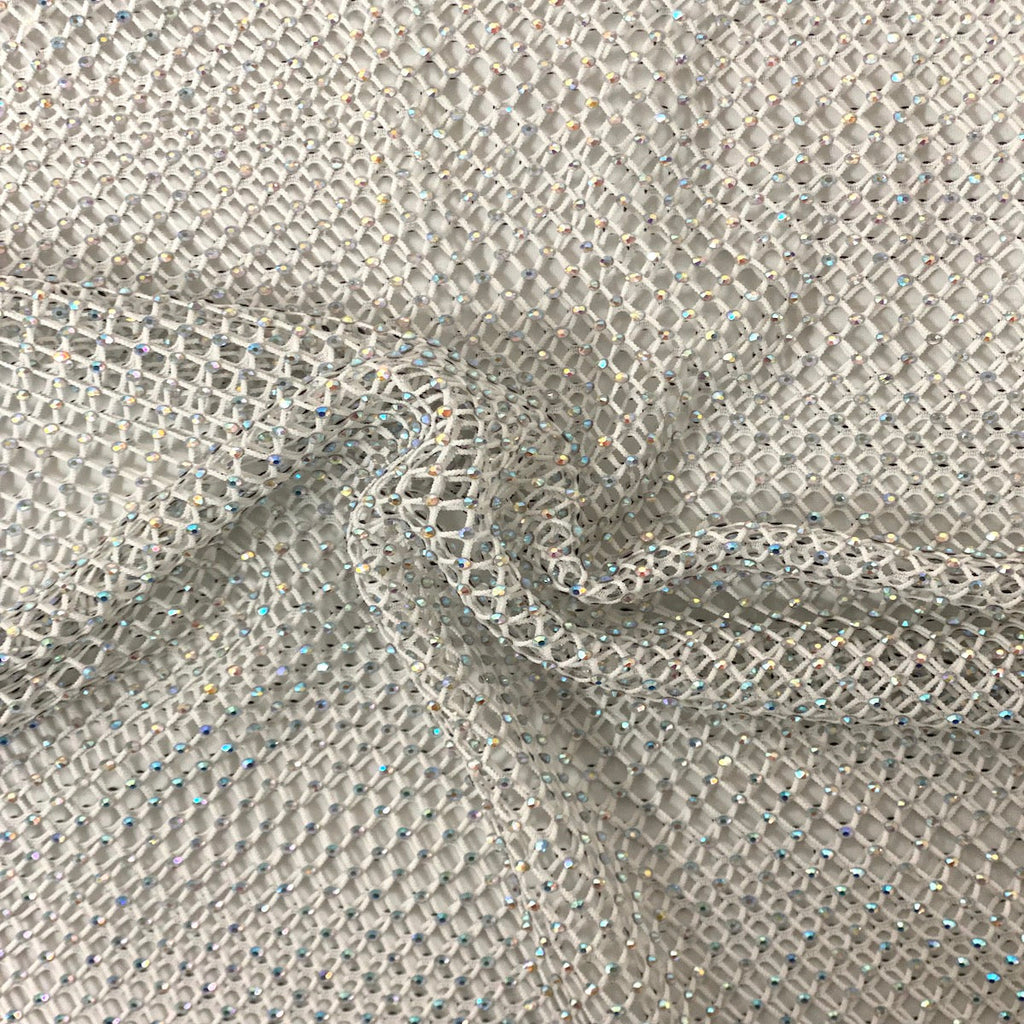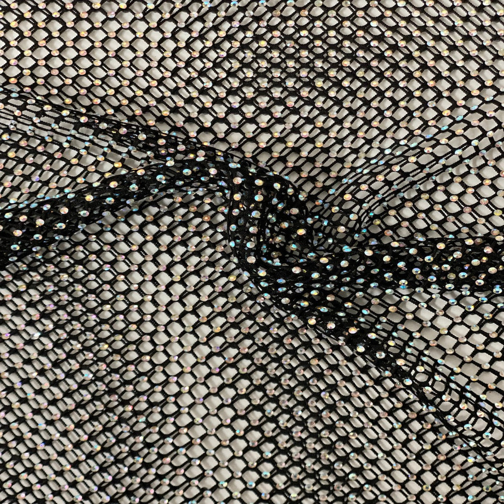 Serene Iridescent Rhinestone Fishnet Lace Fabric