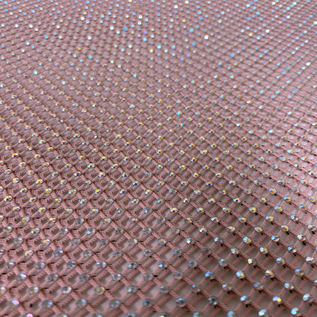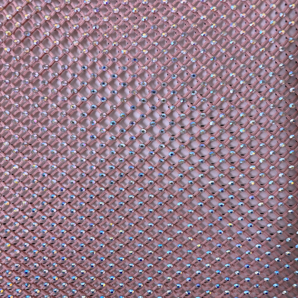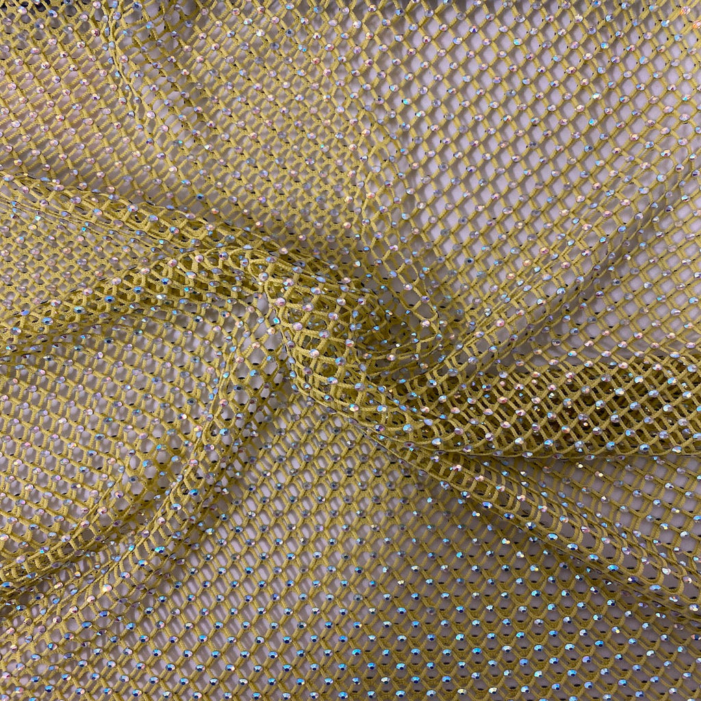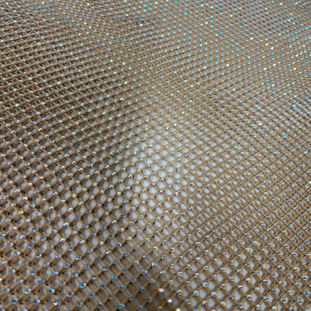 Serene Iridescent Rhinestone Fishnet Lace Fabric