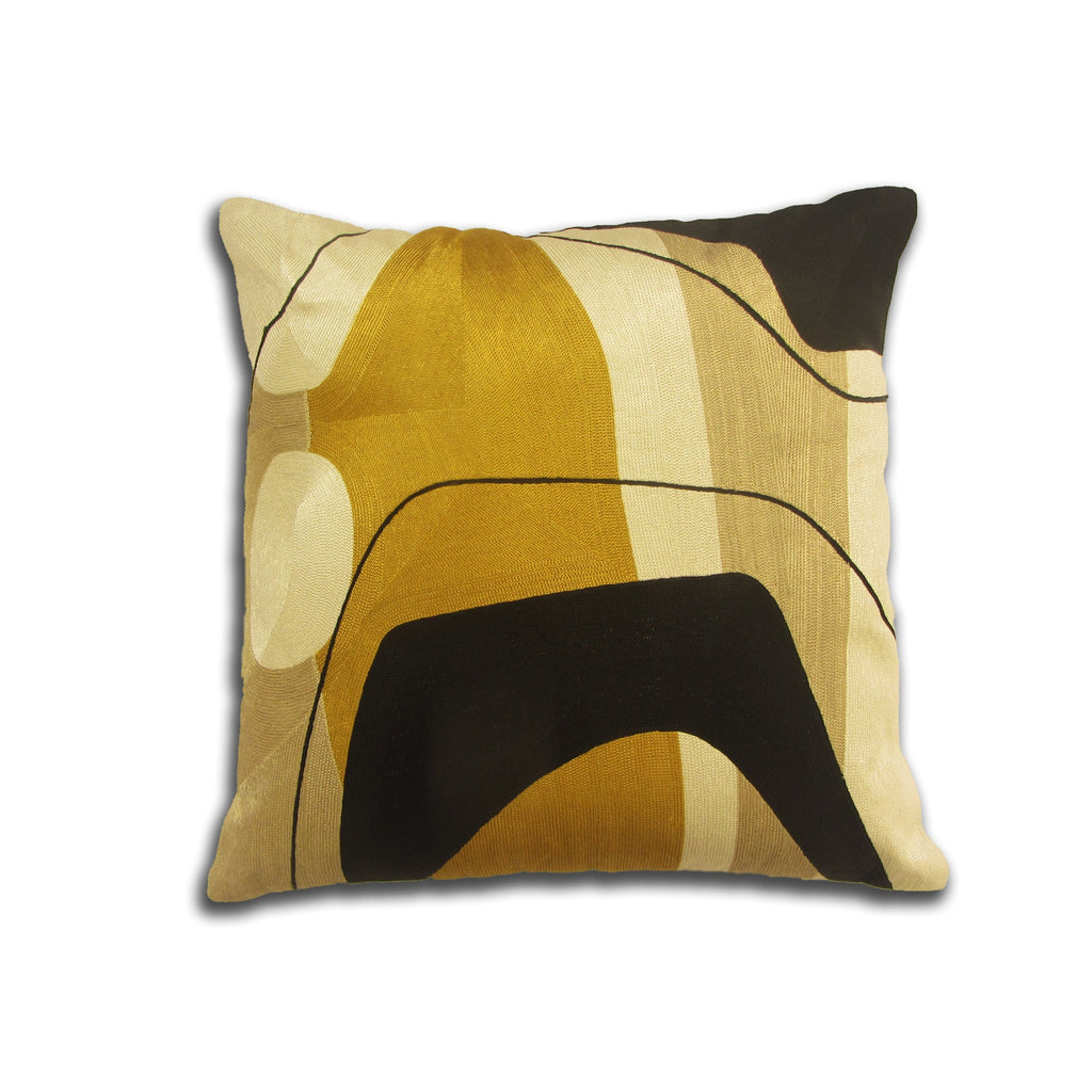 Black Velvet Throw Pillow with Bronze, Black, Beige, Ivory & Mustard Holographic Geometric Embroidery - SEV003.