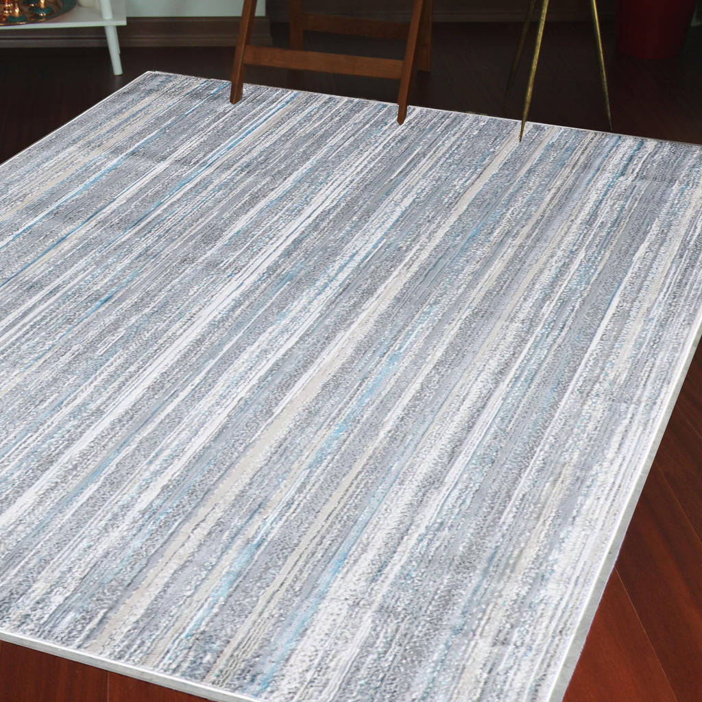 Shinny Shimmery Changing Lines Azure Blue Ultra Soft Cozy Area Rug/Carpet
