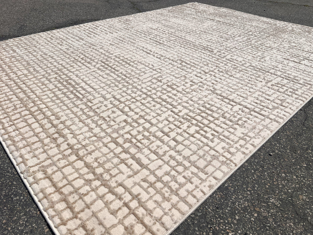 Squared Geometric Tone-on-Tone Rug in Creamy Sandy Beige with Mocha High-Low Texture - NUDE 26