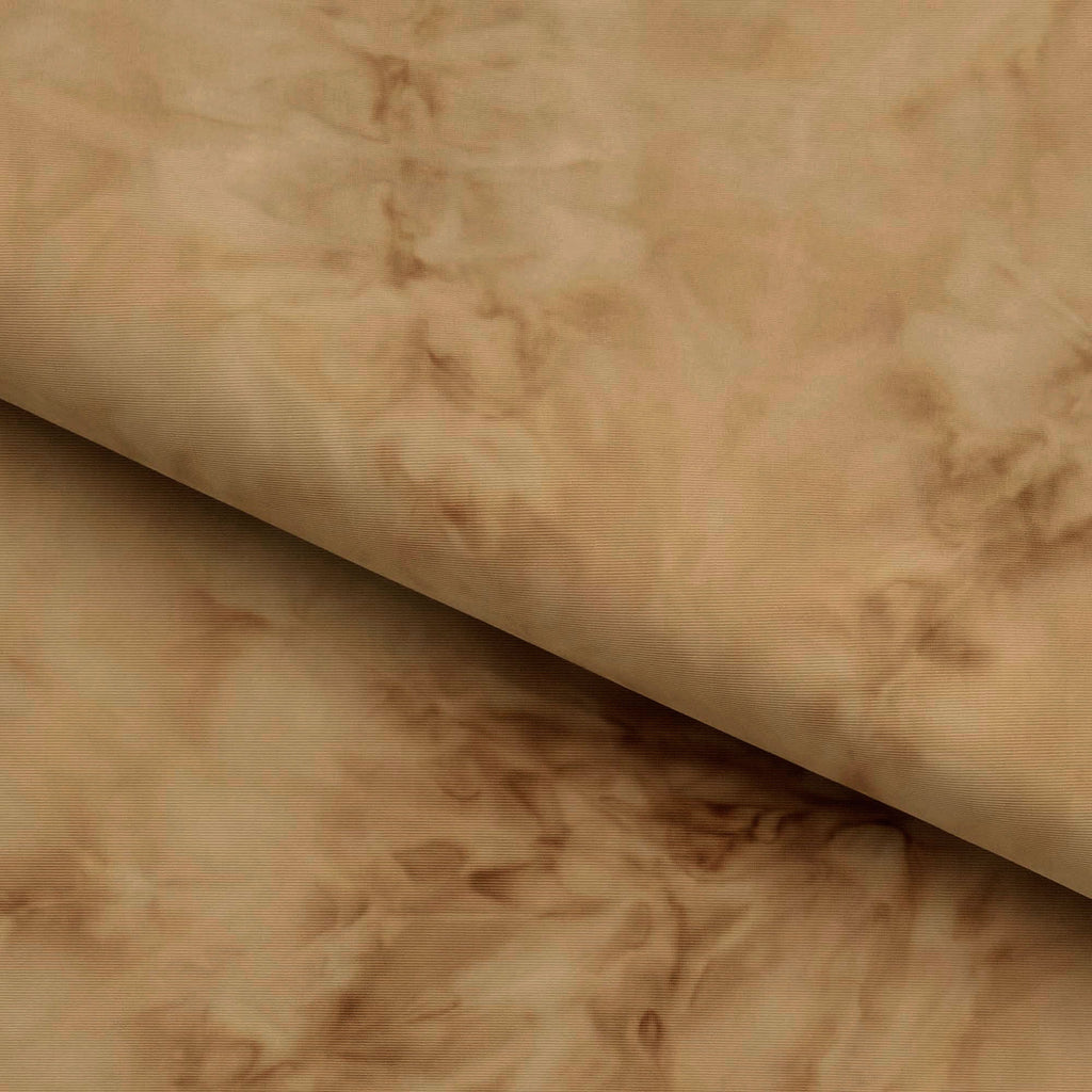 Tempest is a 4-way stretch Tie Dyed Polyester SPANDEX. This fabric is ideal for performance costumes, swimwear, and athleisure fashion. It's soft-to-the-touch feel and vibrant colors make it a great choice for any project. Tempest is a versatile fabric that is designed to meet any need as it offers a unique combination of strength, breathability, and durability that will stand up to any activity. With its exceptionally soft texture, vibrant hues, and 4-way stretch, it provides a luxurious feel that will surely bring life to any project. An ideal choice for any climate or application, Tempest is great for everything from a dynamic yoga session to a night out. Its lightweight weave is also perfect for creating fashionable pieces like skirts, dresses, and more.