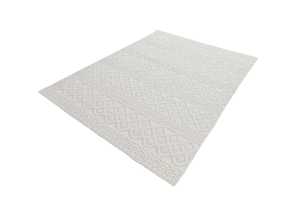 Soft White/ Cream Rug with Bohemian Motif and High-Low Texture - TIA 101.