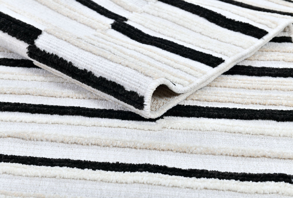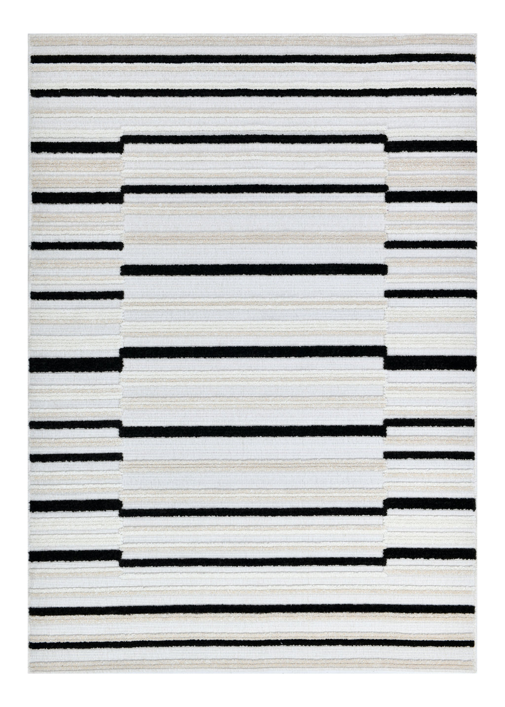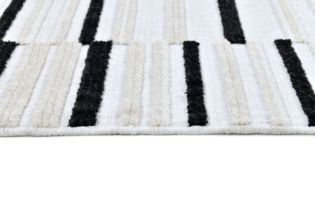 Soft Cream Rug with High-Low 3D Detail with Black/Neutral Striped Bohemian Motif - TIA 102.