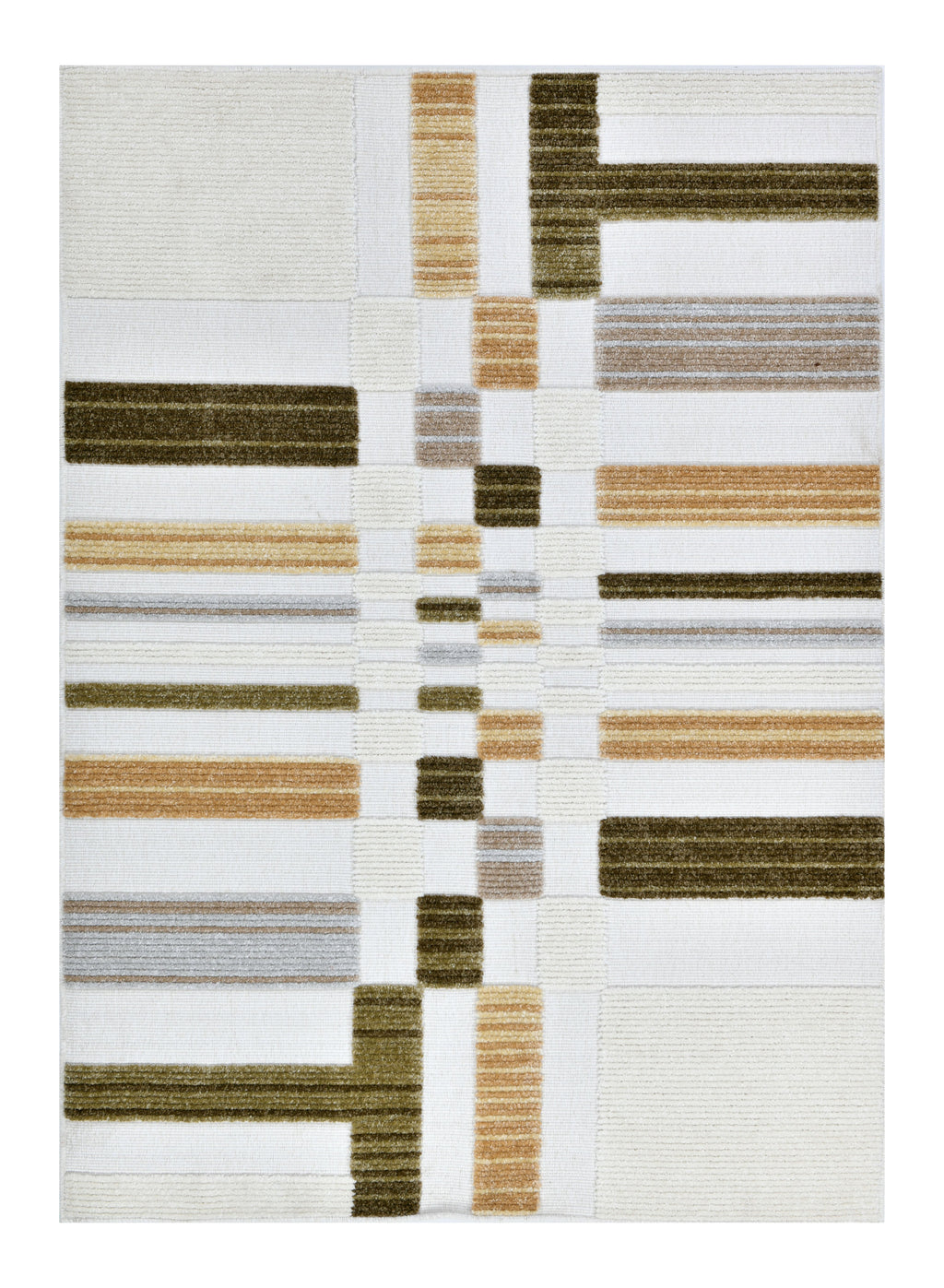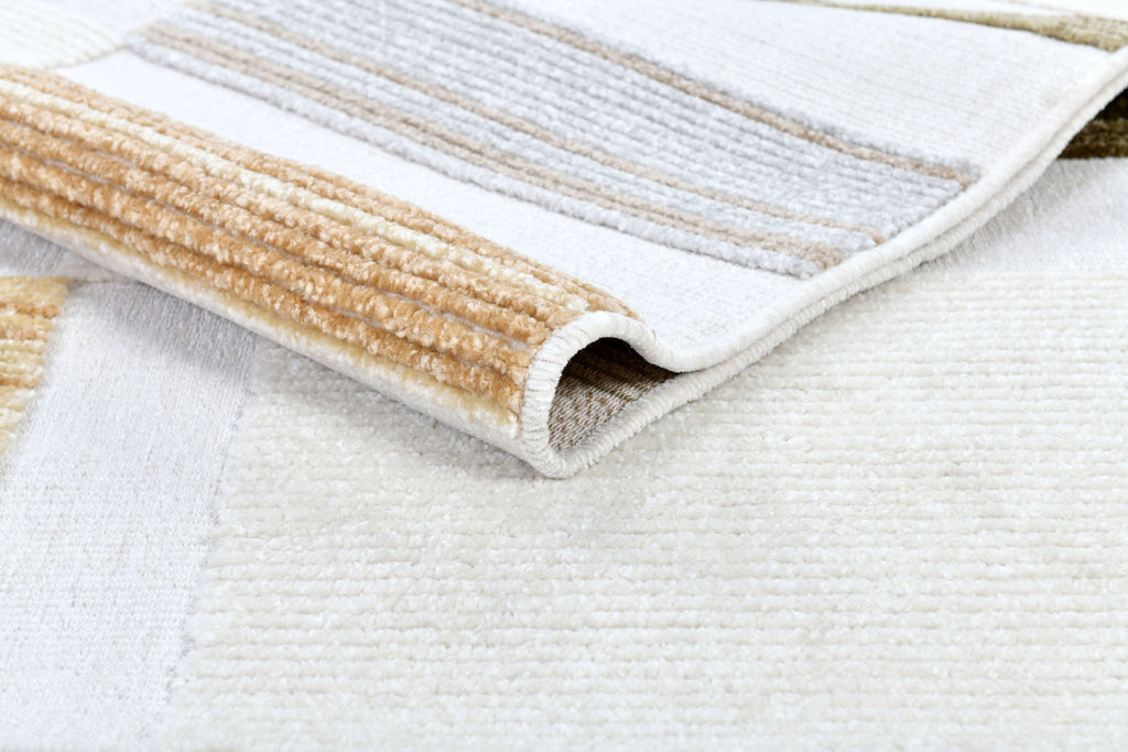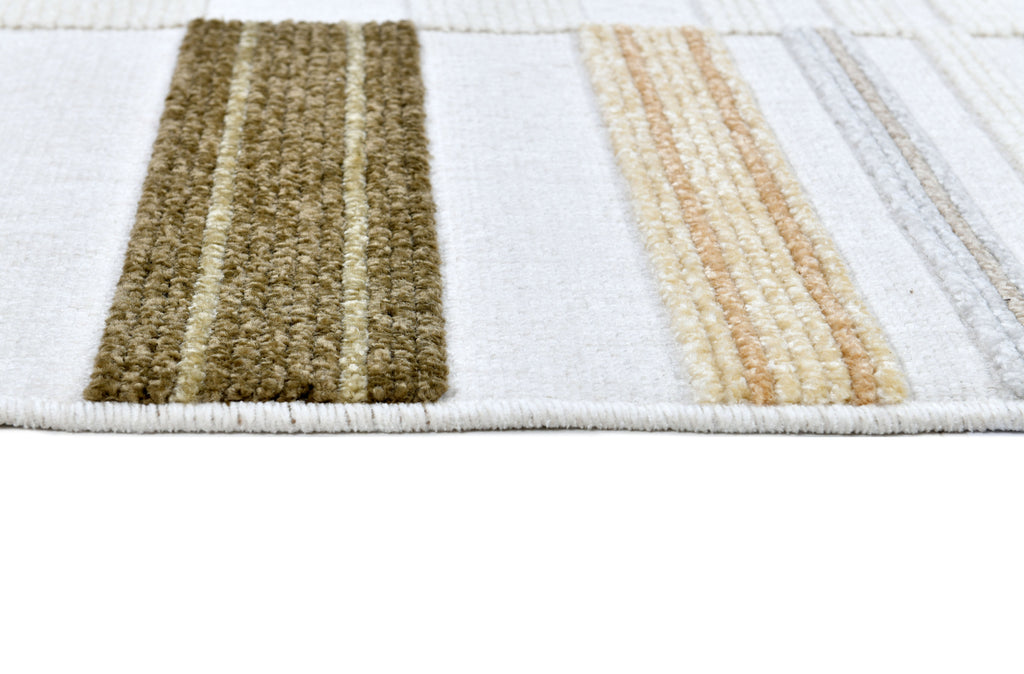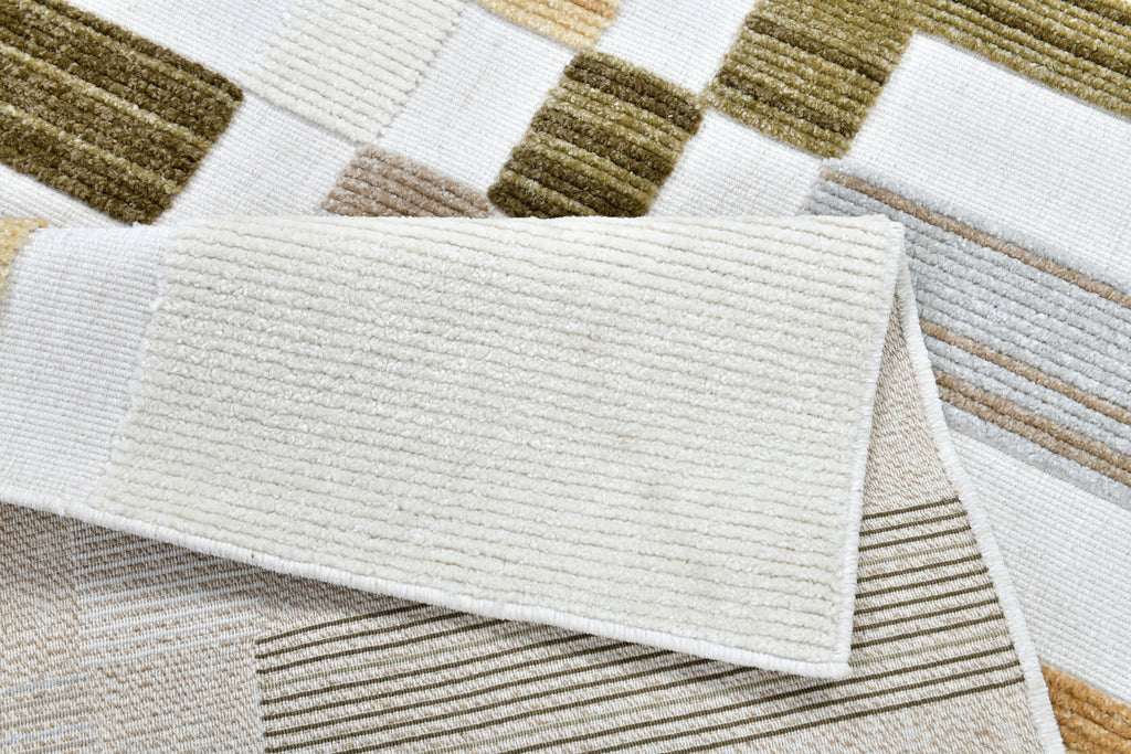Cream Boho Area Rug – High-Low Texture with Earthy Hues of Mustard, Green & Beige - TIA 103.