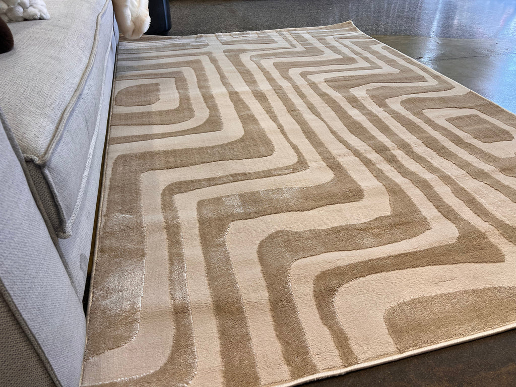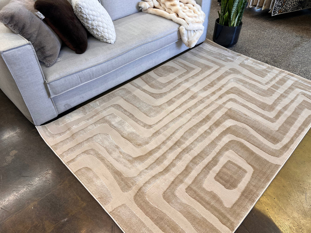 Tone-on-Tone Mocha Geo: Modern High-Low Rug in Warm Beige - NUDE 22