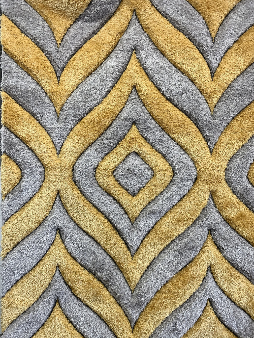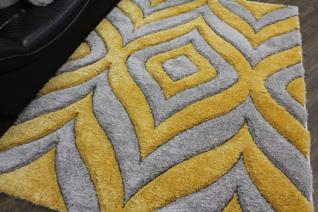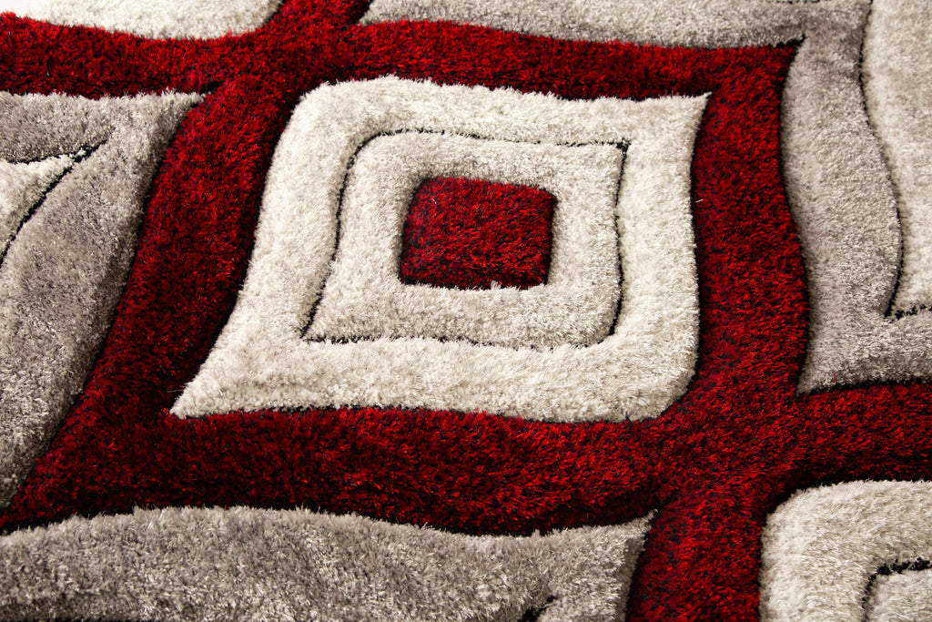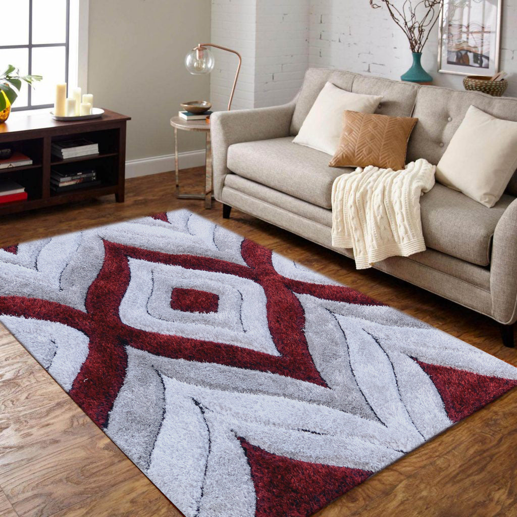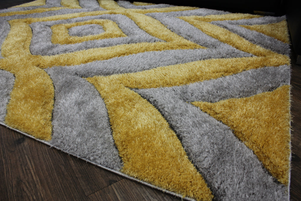 Elevate your home decor to new heights of comfort and style with our Plush Fluffy Shine 3D geometric Touch of Red/Silver/Yellow  Shag Area Rug/Carpet. This soft, dense, and luxurious area rug is designed to bring a touch of elegance and innovation to your living spaces. Made from 100% polyester, this rug guarantees superior, long-lasting quality that will withstand daily use while maintaining its exquisite appearance. The shiny yarn used in its construction enhances its visual appeal, while the durable Jute Backing provides stability and support. Thanks to its sturdy construction, you won't need an additional rug pad.