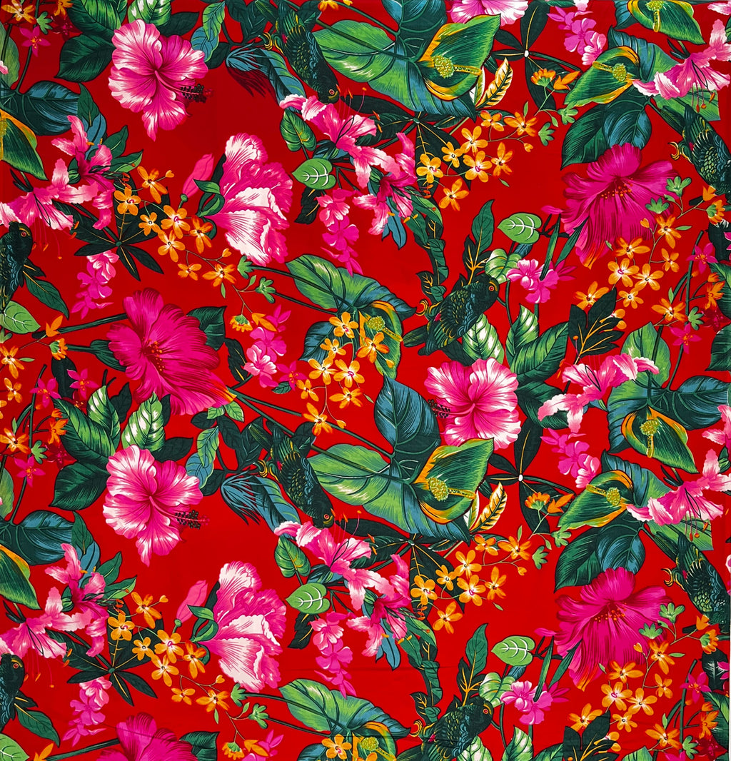 Tropical Parrot Garden Peachskin Fabric | Islands Fabric