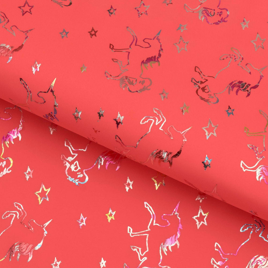 Introducing Unicorns Foil in Pink Printed Spandex Fabric: vibrant, 4-way stretch fabric that will bring your swimwear, dancewear, activewear, or cosplay to life! This fabric is made using high-quality nylon spandex and is meant to move with you. With Direct to Ground Digital Printing, the dye becomes fully saturated in the material, giving you breathtaking colors and full coverage even when it's stretched. This fabric is specially engineered to be both durable and flexible, so you can rest assured it'll look great and last long no matter how you choose to use it.