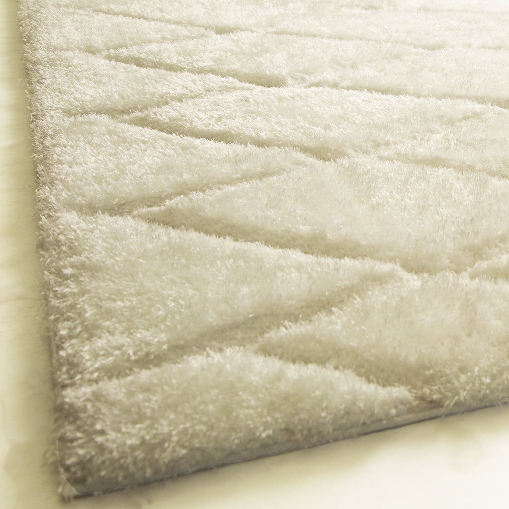 White/Black Modern Shag Area Rug/Carpet | Style# SR-722 - Crafted from 100% Polyester, Plush Fluffy Shine 3D Lines Design