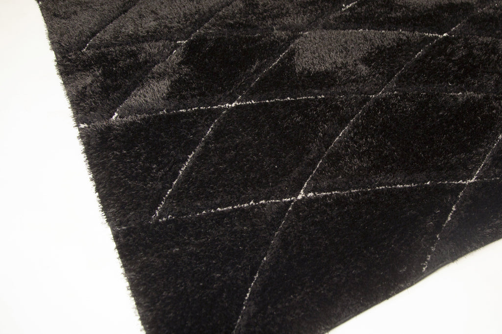 Elevate your home decor to new heights of comfort and style with our Plush Fluffy Shine 3D Lines White & In Black Shag Area Rug/Carpet. This soft, dense, and luxurious area rug is designed to bring a touch of elegance and innovation to your living spaces. Made from 100% polyester, this rug guarantees superior, long-lasting quality that will withstand daily use while maintaining its exquisite appearance. The shiny yarn used in its construction enhances its visual appeal, while the durable Jute Backing provides stability and support. Thanks to its sturdy construction, you won't need an additional rug pad.