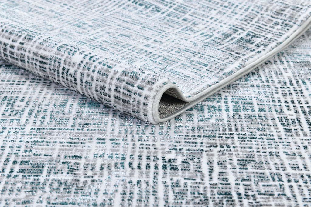 Fresh Cream Rug with Green and Silver Geometric Accents - Z240A