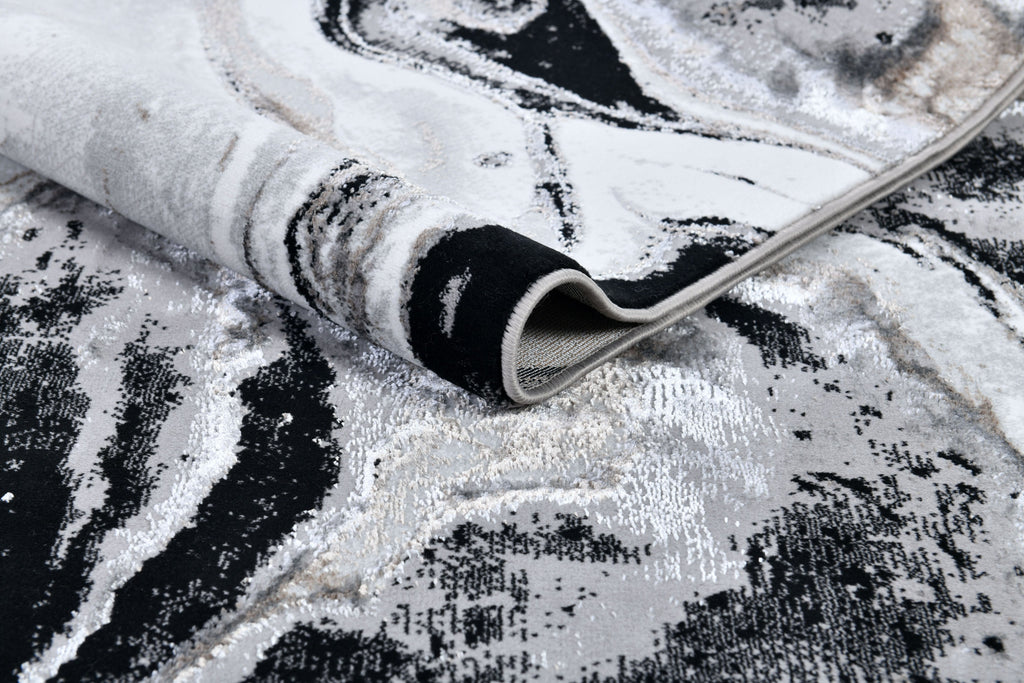 Luxurious fusion of metallic silver, brushed gold, and deep black, abstract marbled design - Z258A (POL803)