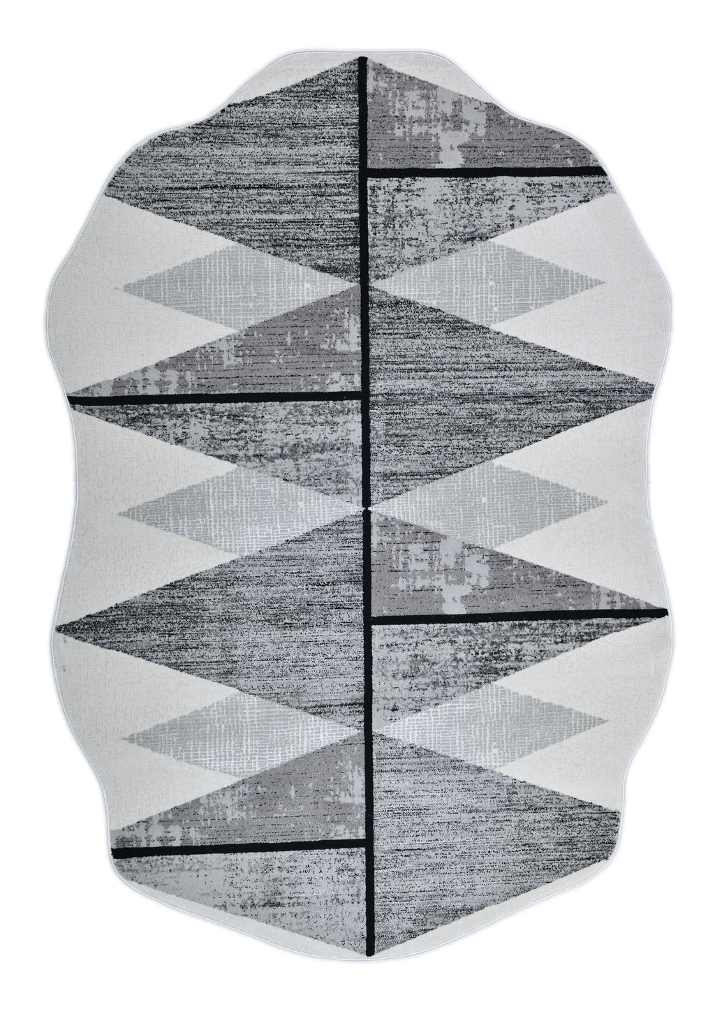 Silver-Toned with Charcoal patterns and Bold Irregular Black Geometric Detailing - Z327A