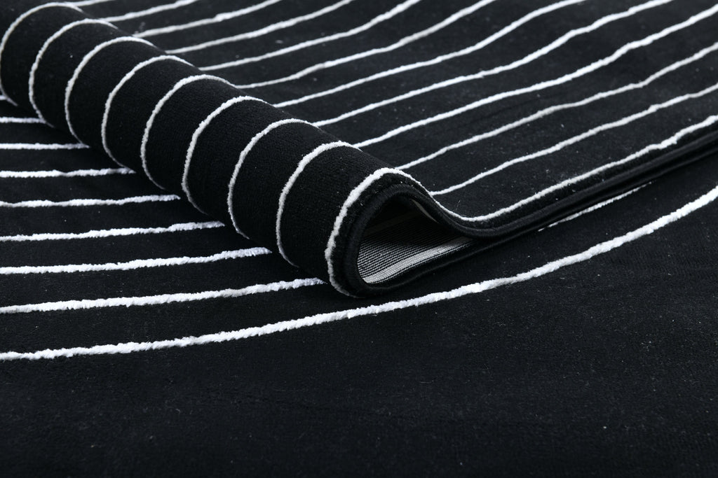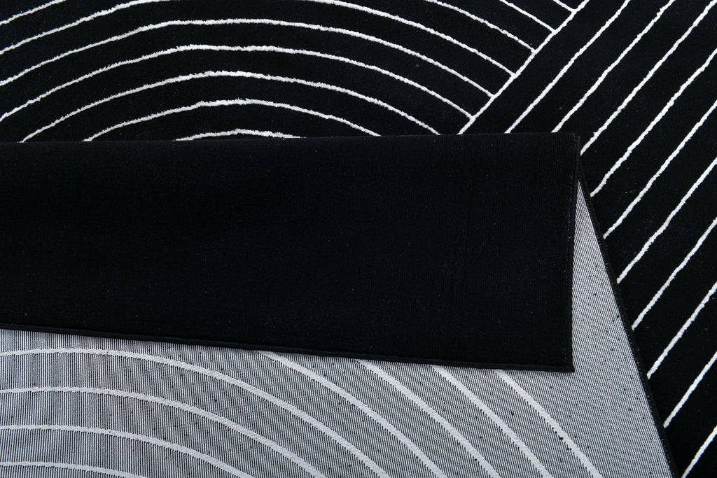 Black Area Rug with White Geometric Circle Design – Soft Touch - Z330B (POL812)